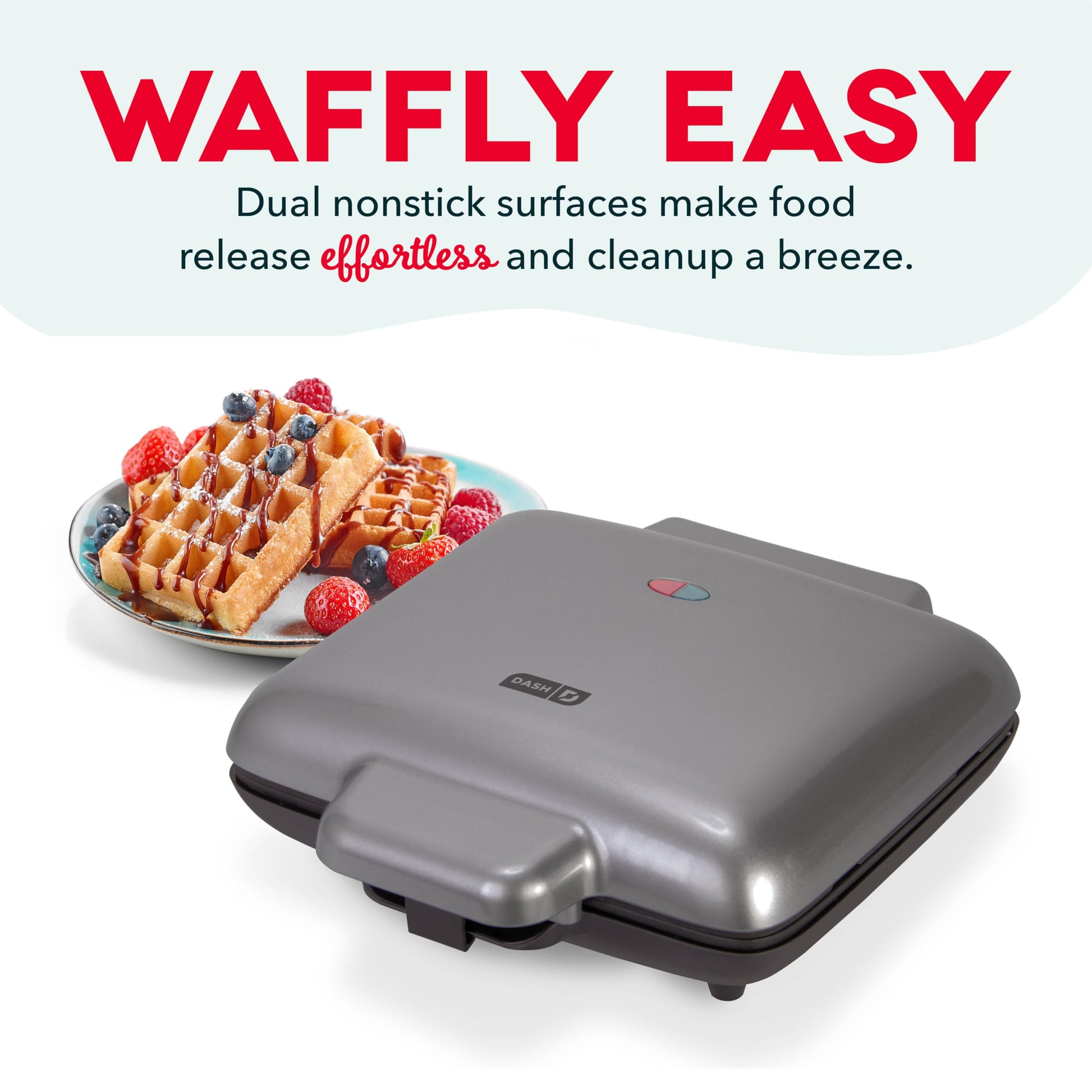 Details: Make large batches of your favorite mini waffles with the DASH Multi Mini Waffle Maker. Featuring four 4” waffle molds on a single plate, this small waffle iron allows you to cook four mini waffles simultaneously. The PTFE nonstick surface ensures easy release and quick cleaning, delivering perfectly shaped waffles every time. Just like our bestselling Mini Waffle Maker, it’s incredibly easy to use—simply plug it in and add batter! Ideal for entertaining, family breakfasts, or preparing batches to freeze for later, the DASH Multi Mini Waffle Maker lets you create multiple mini waffles in no time. And go beyond waffles—use your Multi Mini Waffle Maker to cook hash browns, cornbread, cookie dough, and so much more! Mini is mighty, and the possibilities are endless! Enjoy hassle-free cooking and cleaning with this versatile appliance!
