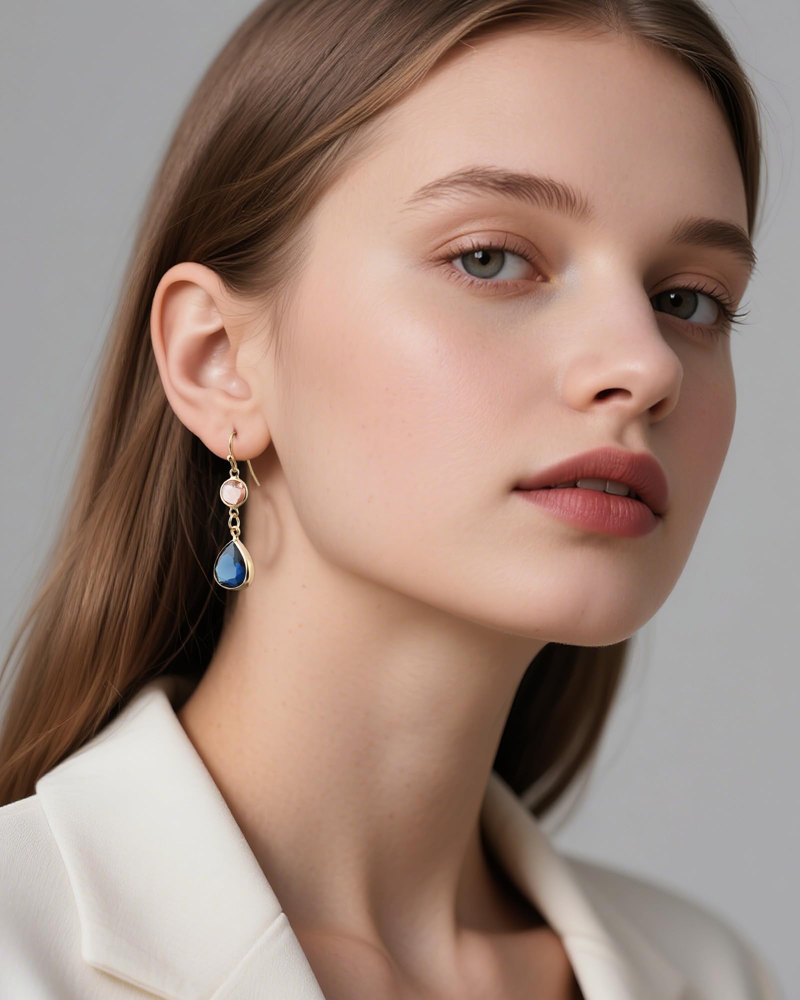 - [Novel Design] These drop earrings adopts modern design, combination sapphire and rose topaz, it is full of stylish flavor. The sapphire reflect different color in different direction, which can be matched with any clothing to add a trace of vitality to any outfit.