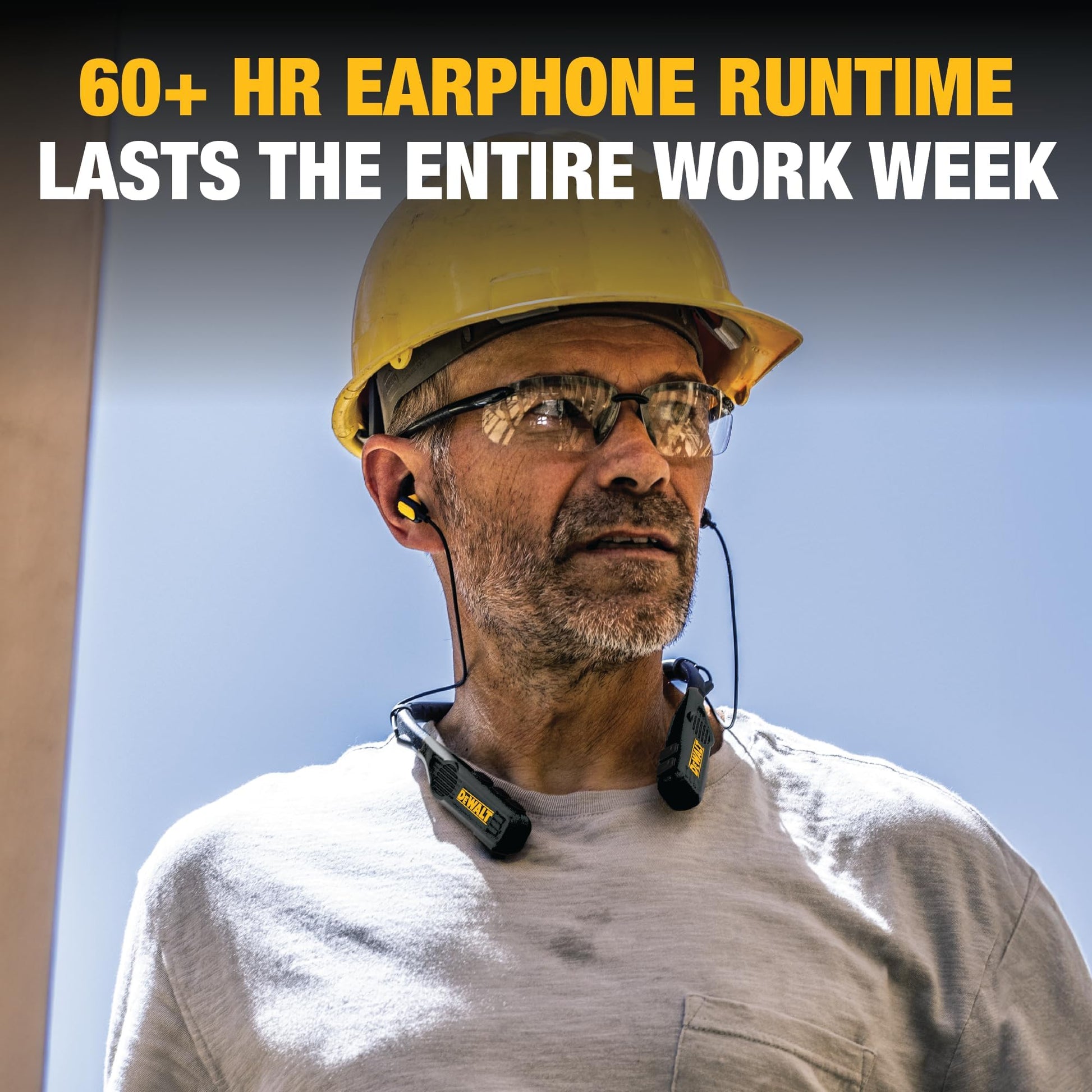 - Runtime that Lasts the Work Week: Enjoy an impressive 60+ hours of DEWALT earbuds runtime and 7.5+ hours of speaker time, ensuring uninterrupted music playback throughout the day