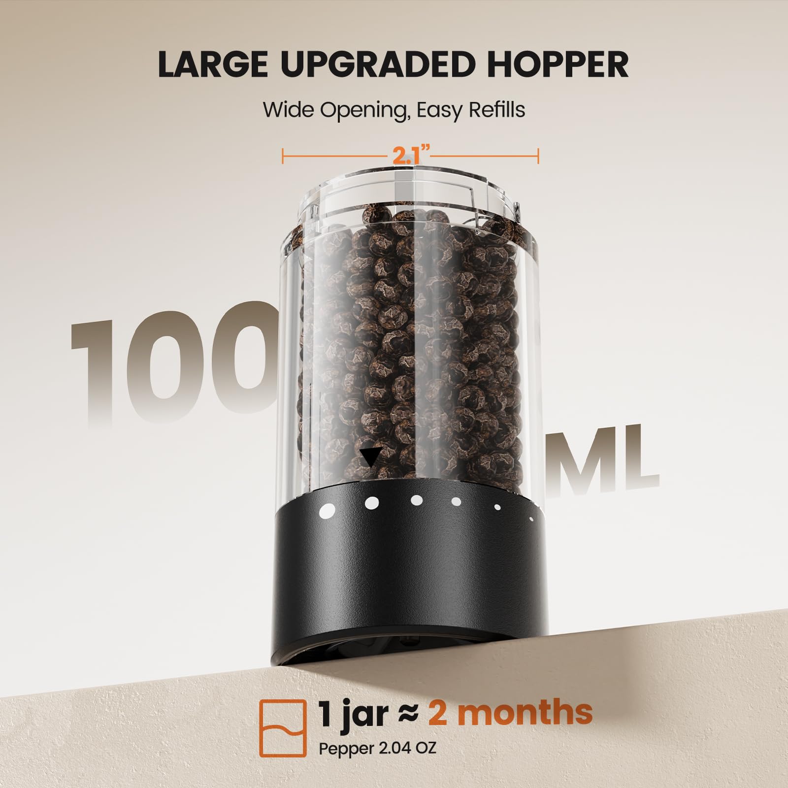 - โก ใ๐๐ฐ๐ผ-๐๐ฟ๐ถ๐ฒ๐ป๐ฑ๐น๐ ๐๐ฎ๐๐ ๐๐ต๐ฎ๐ฟ๐ด๐ฒ,๐๐ผ๐ผ๐ธ ๐๐ฟ๐ฒ๐๐ต ๐ช๐ฎ๐ถ๐ ๐๐ฒ๐๐ใThis rechargeable salt and pepper grinder set only powers up in 5 minutesโenough to season an entire meal. A full charge delivers long-lasting power, keeping your grinder running for up to 2 months. Ditch disposable batteries and enjoy smarter kitchen appliances for hassle-free, eco-conscious cooking.