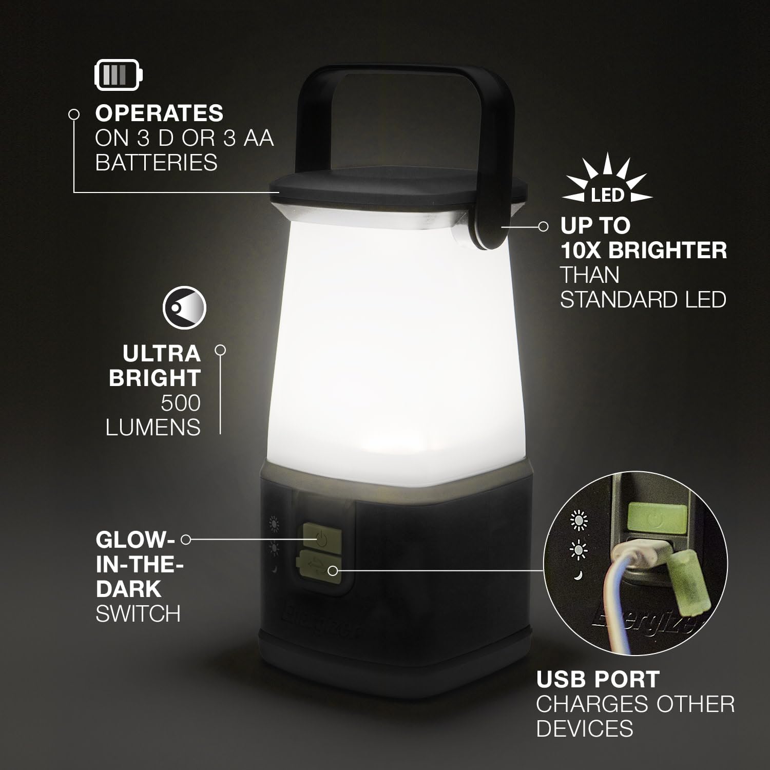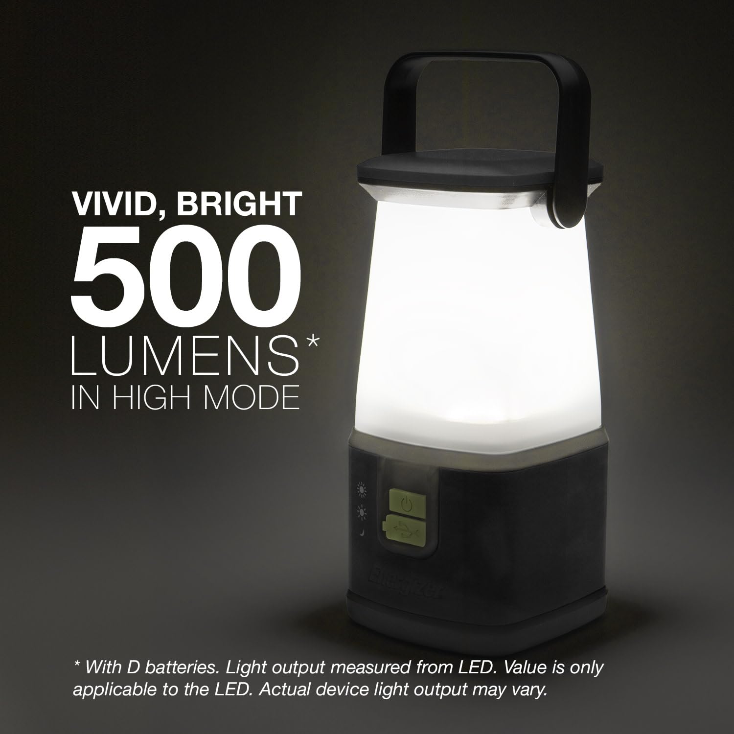 - [UP TO 10X BRIGHTER]: Advanced LED technology make this Energizer lantern up to 10x brighter than standard LEDs. On High mode, this powerful light emits 500 lumens with a runtime of 150 hours for extra-long use