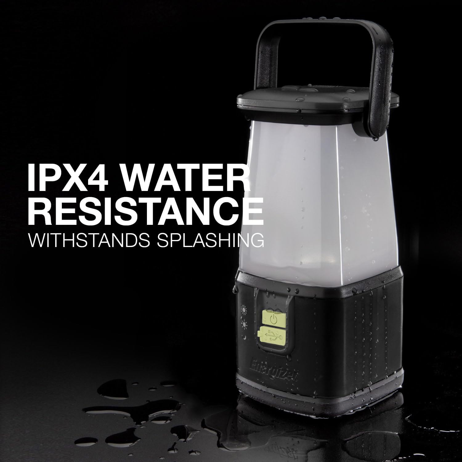 Details: The Energizer Weatheready 360 Lantern is Energizer's most powerful emergency lantern. Exceptional brightness and excellent runtime help make this battery powered lantern a reliable emergency light when you're in the dark. A glow-in-the-dark switch helps you quickly turn on and adjust the light intensity with three power modes. On High mode, this powerful LED area light fills even large rooms with 500 lumens. On Low mode, the LED lantern offers extra-long operation during extended power outages with a runtime of 650 hours. Night light mode casts diffused area light for soft illumination. PowerSwitch technology allows this backup light to operate on either three D batteries for maximum performance or three double-A batteries for convenience. Ready for all weather conditions, this battery powered light is IPX4 water-resistant and impact-resistant up to 1 meter for reliable use. Trust in Energizer for reliable performance in any situation.