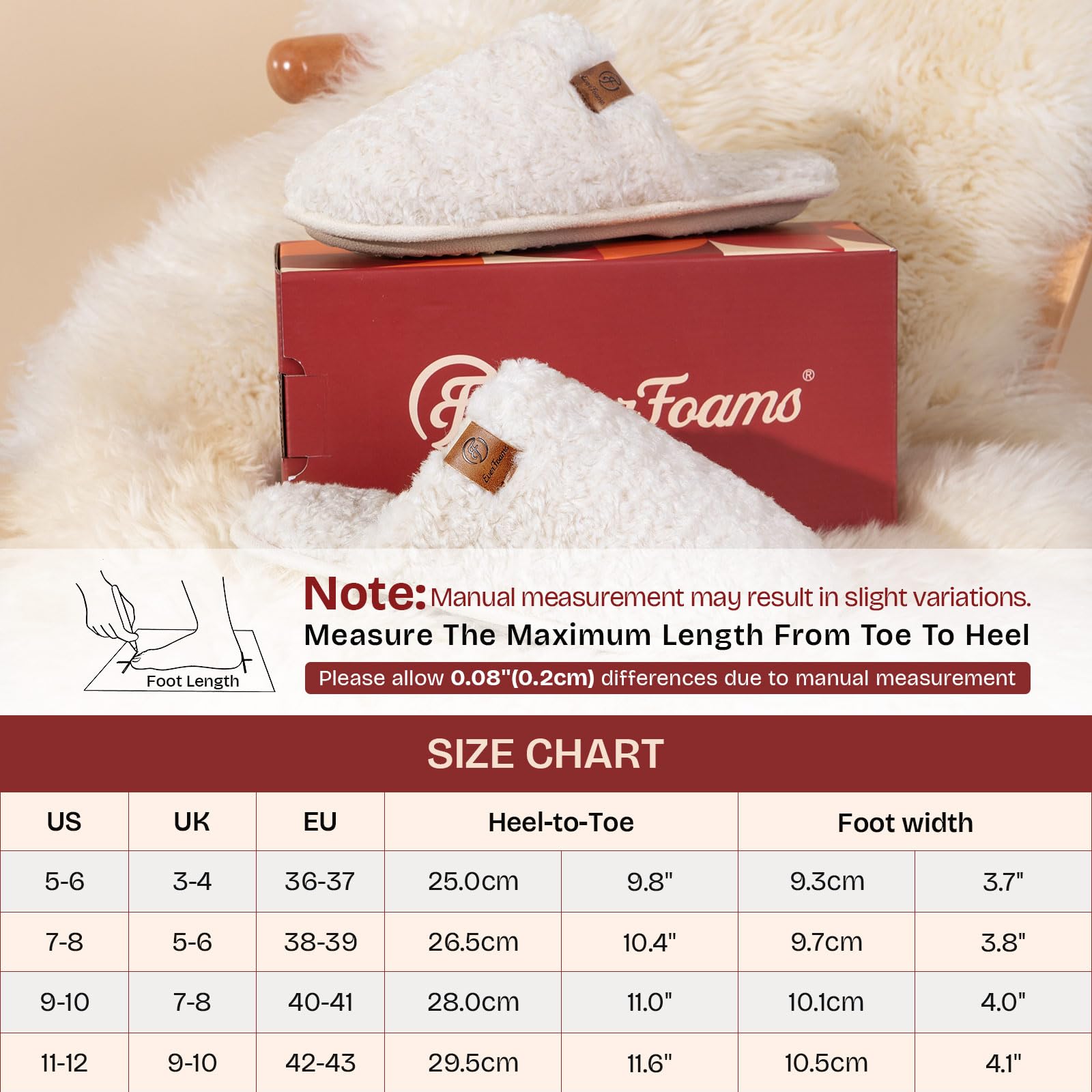 EverFoams Women's Fuzzy Slip-on Slippers Warm Cozy Soft Lightweight Memory Foam Indoor House Shoes Cream White, 7-8 US