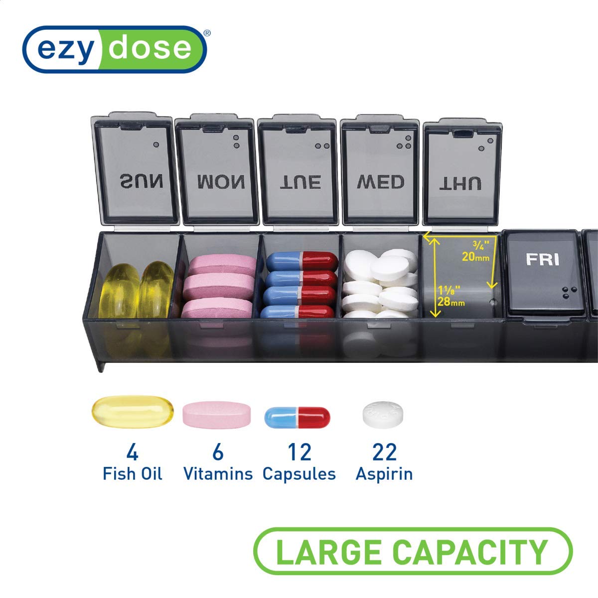 EZY DOSE Weekly (7-Day) Pill Case, Medicine Planner, Vitamin Organizer Box, Convenient and Easy to Use, Large Compartments, Travel Friendly, Black, Made in the USA, BPA Free