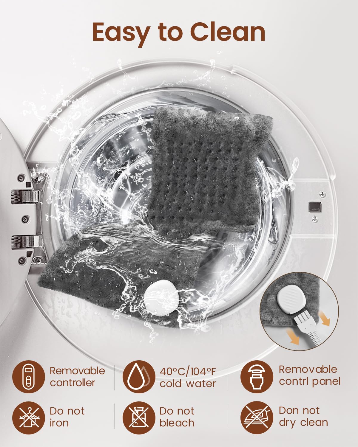 - Skin Friendly & Machine Washable: Renpho travel heating pad feels soft in your hands and comfortable for all parts of the body. Use on bare skin and keep warm throughout the day. The heating pad for neck can be cleaned by simply disconnecting the controller and putting in a washing machine on a gentle wash cycle. Hang dry and the material will remain silky soft.