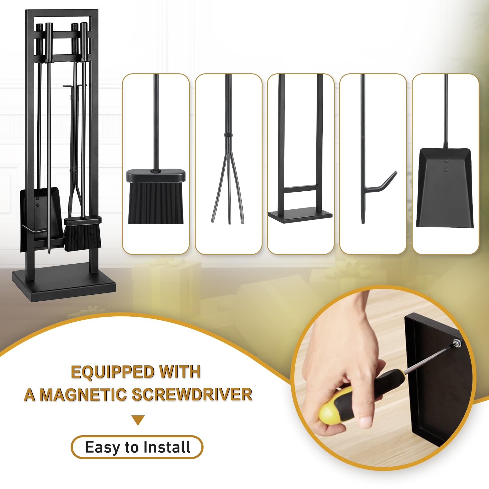 - 【Equipped with screwdriver】 The package of the fireplace set include a product introduction, which shows all parts and installation methods. We send a high quality screwdriver, so you can easily assemble this set of fireplace set tools in 2 minutes. This practical and durable tool will go well with your fireplace.