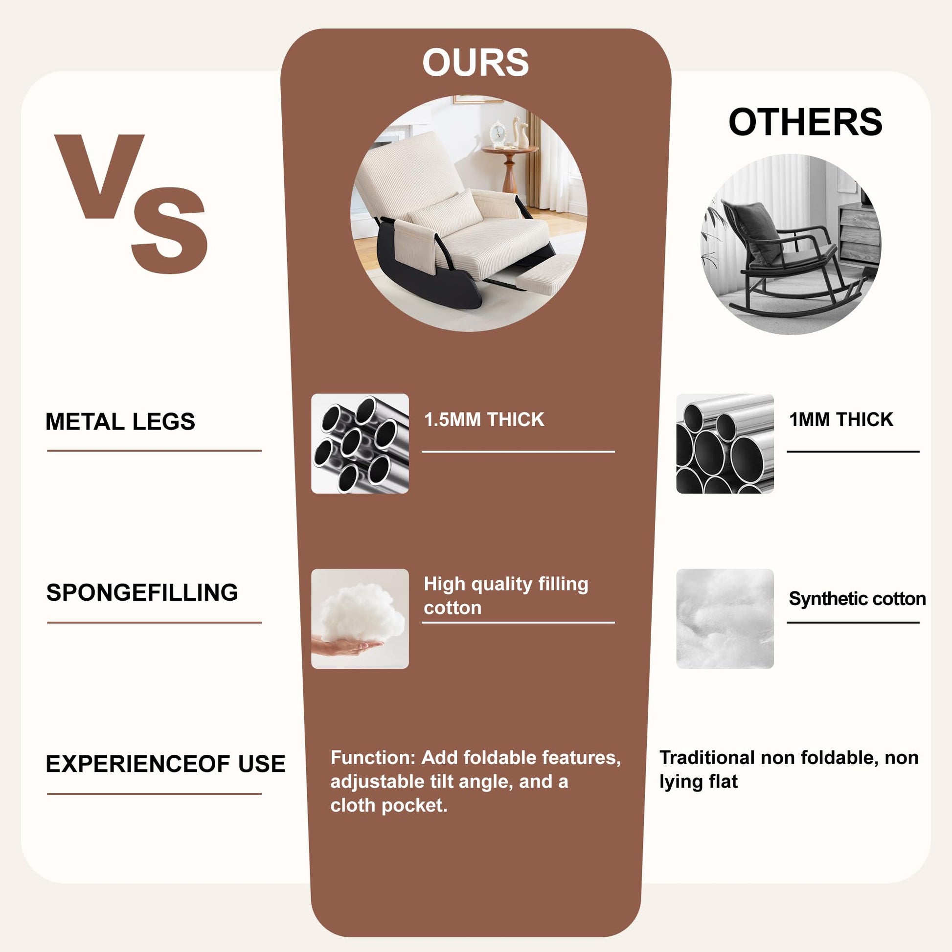 - ๐๐ซ๐ ๐จ๐ง๐จ๐ฆ๐ข๐ ๐๐ฎ๐ฉ๐ฉ๐จ๐ซ๐ญ ๐๐ฒ๐ฌ๐ญ๐๐ฆ ๐๐๐ฌ๐ข๐ ๐ง: this upholstered rocking chair provides support for your entire body, from Head and Back to Hips and Legs, Lumbar Pillow lumbar reinforcement, shoulder-hugging backrest contours, and an extra-wide seat with thigh support. High-resilience foam + soft padding prevents pressure points during extended sitting sessions