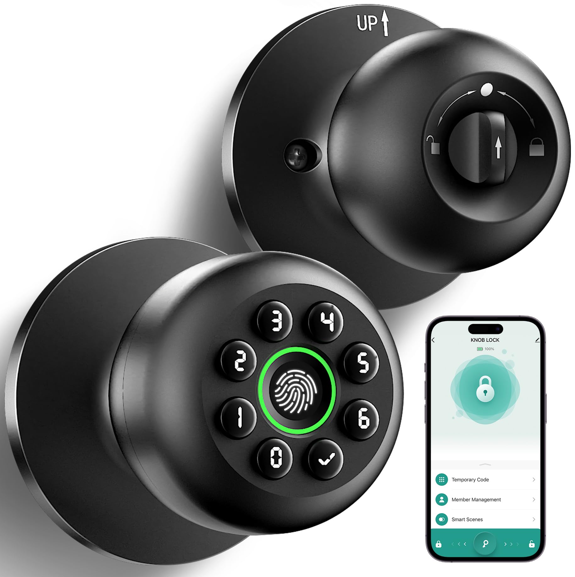 - Comprehensive App Features: Our keypad door knob allows for seamless user management through the app. Easily share access, add members, manage fingerprints and passwords, and create permanent or temporary access codes for family members, guests, deliveries, or housekeepers. Set silent mode for undisturbed sleep, enable passage mode for continuous access, and view historical logs effortlessly for complete control and convenience.