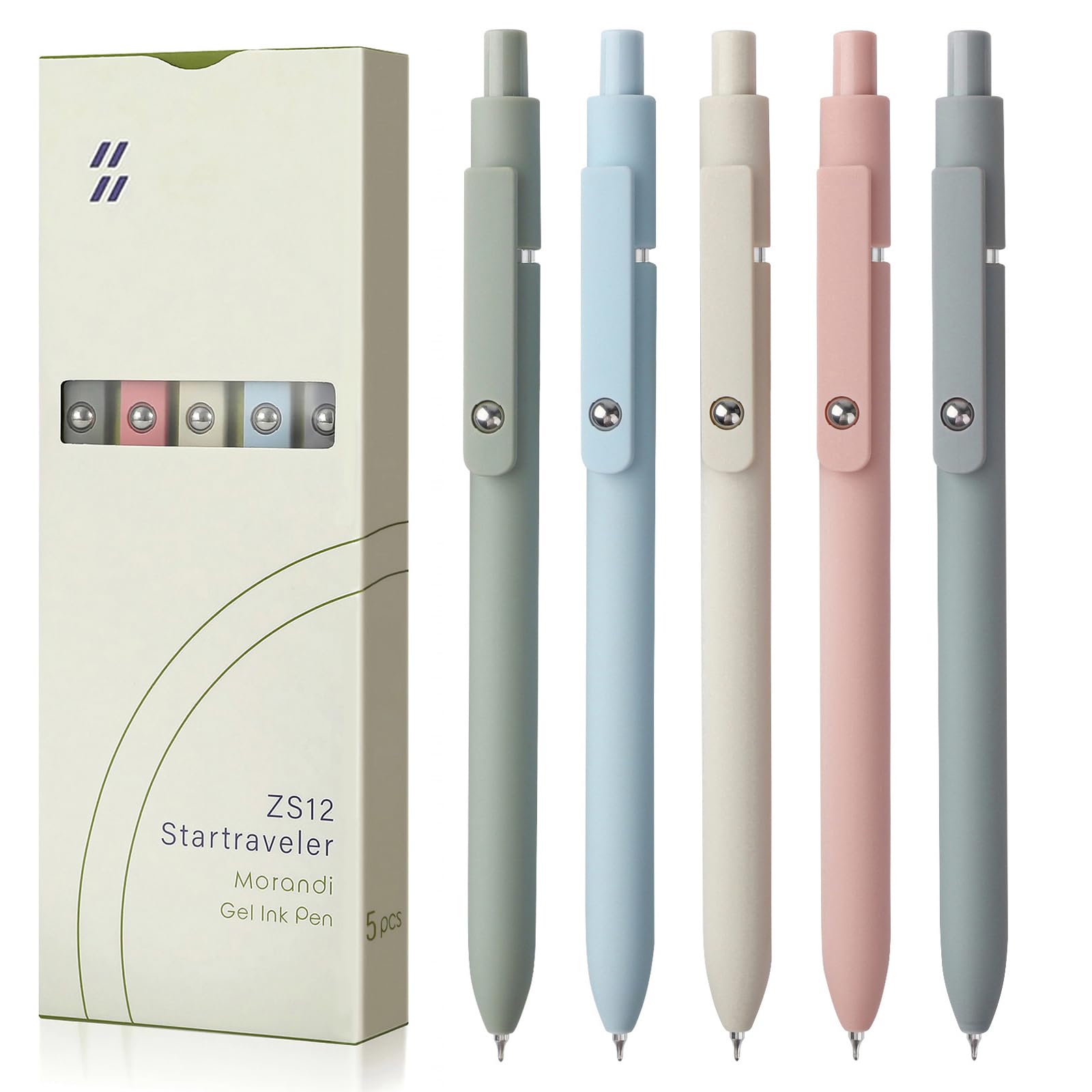 FIOVER Gel Pens, 5pcs 0.5mm Quick Dry Black Ink Fine Point Smooth Writing Pens High-End Series Ballpoint for Office School Supplies(Morandi)