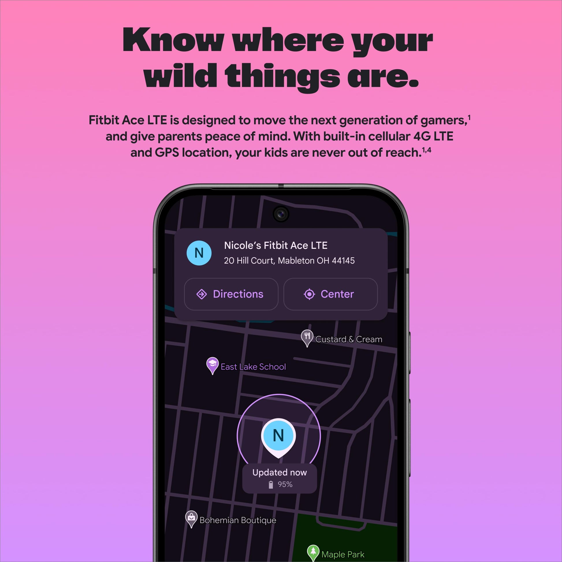 - KNOW WHERE YOUR WILD THINGS ARE - The Fitbit Ace LTE is the first-of-its-kind kids smartwatch and fitness tracker designed to move the next generation of gamers; with built-in cellular 4G LTE and GPS location, they’re never out of reach[1,4]