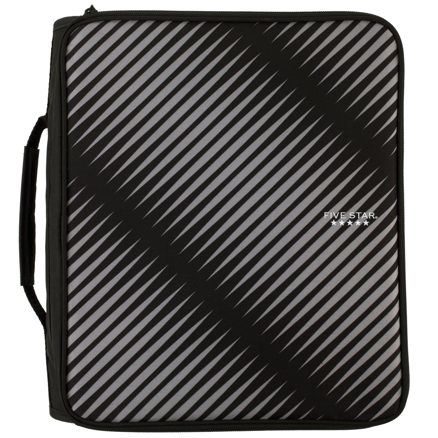 Details: LASTS ALL YEAR. GUARANTEED! Store all of your important schoolwork within the Five Star 2" Zipper Binder Plus Multi Access File. This durable 2" binder has 3 round rings, perfect for storing homework, handouts and other 3-hole punched papers. A 5-tab expanding file helps store and organize loose sheets. The multi access file can be used from both outside and inside the binder so you can get to your papers without having to unzip the binder. The rings hold up to 380 sheets and the file up to 500 sheets, for 880 sheet total capacity, when using 15 lb. filler paper. Features a full zipper closure and carrying handle. Binder measures 13-3/4" x 12-1/8" x 3-1/2". Available in Black. Guarantee is valid for one year from purchase or delivery date, whichever is longer. Does not cover misuse.