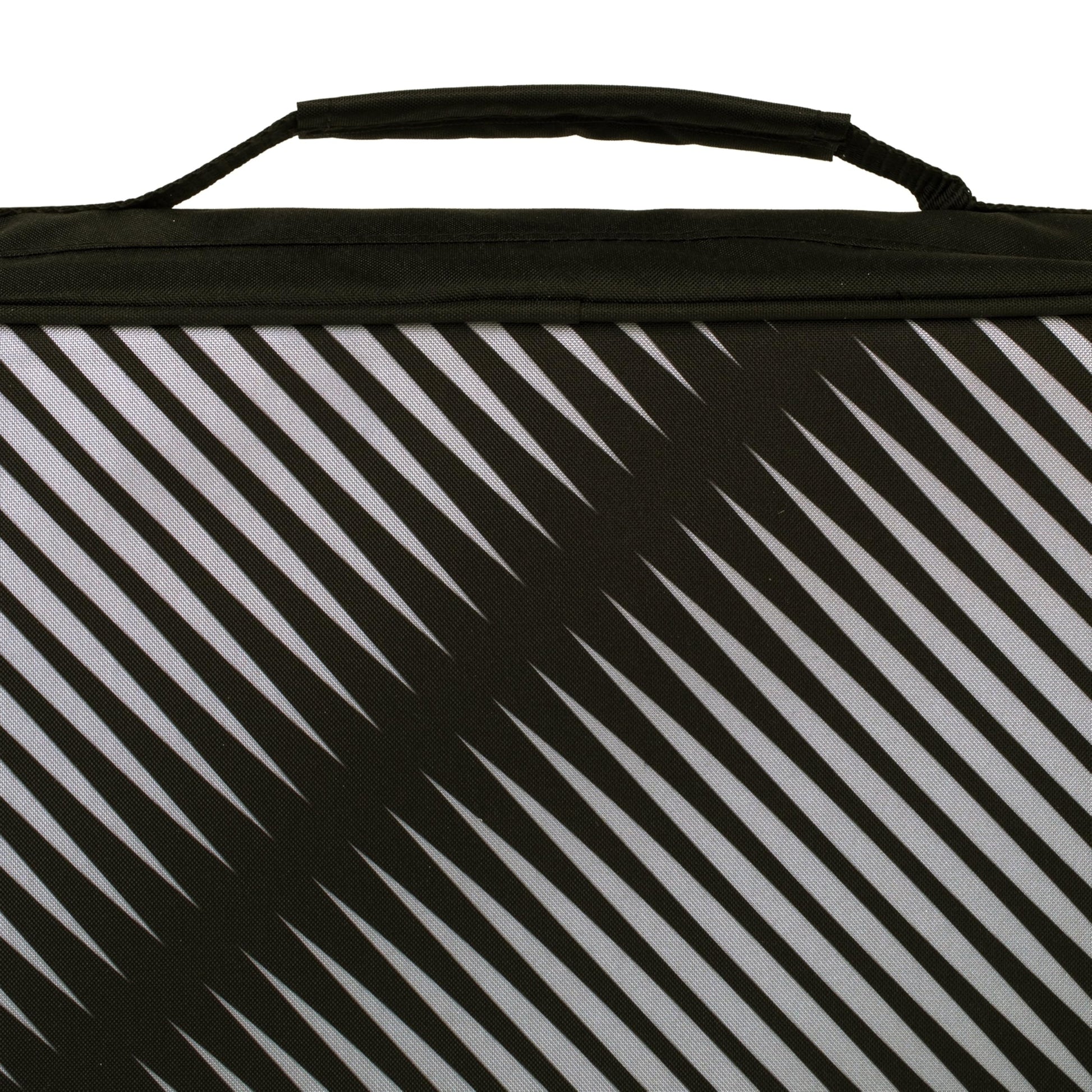 - Features a full zipper closure and carrying handle. Binder measures 13-3/4" x 12-1/8" x 3-1/2". Available in Black.