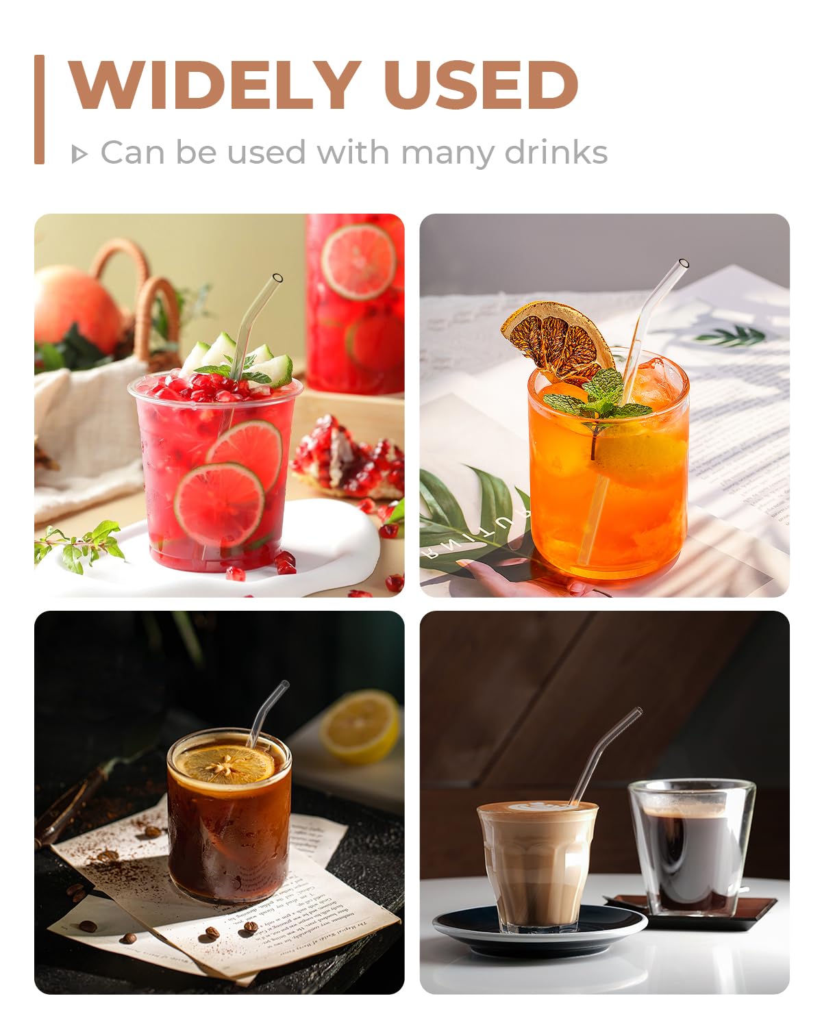 - Reusable & Eco-Friendly: Say goodbye to disposable plastic straws and choose these sustainable glass straws. They are reusable, dishwasher-safe, and won't leave any strange taste in your drinks. Enjoy your beverages with peace of mind while helping reduce environmental waste.