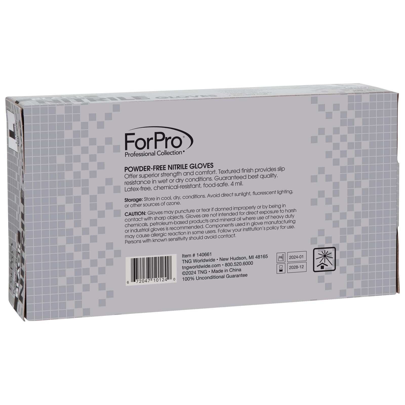 ForPro Professional Collection Disposable Nitrile Gloves, Chemical Resistant, Powder-Free, Latex-Free, Non-Sterile, Food Safe, 4 Mil, Black, Large, 100-Count