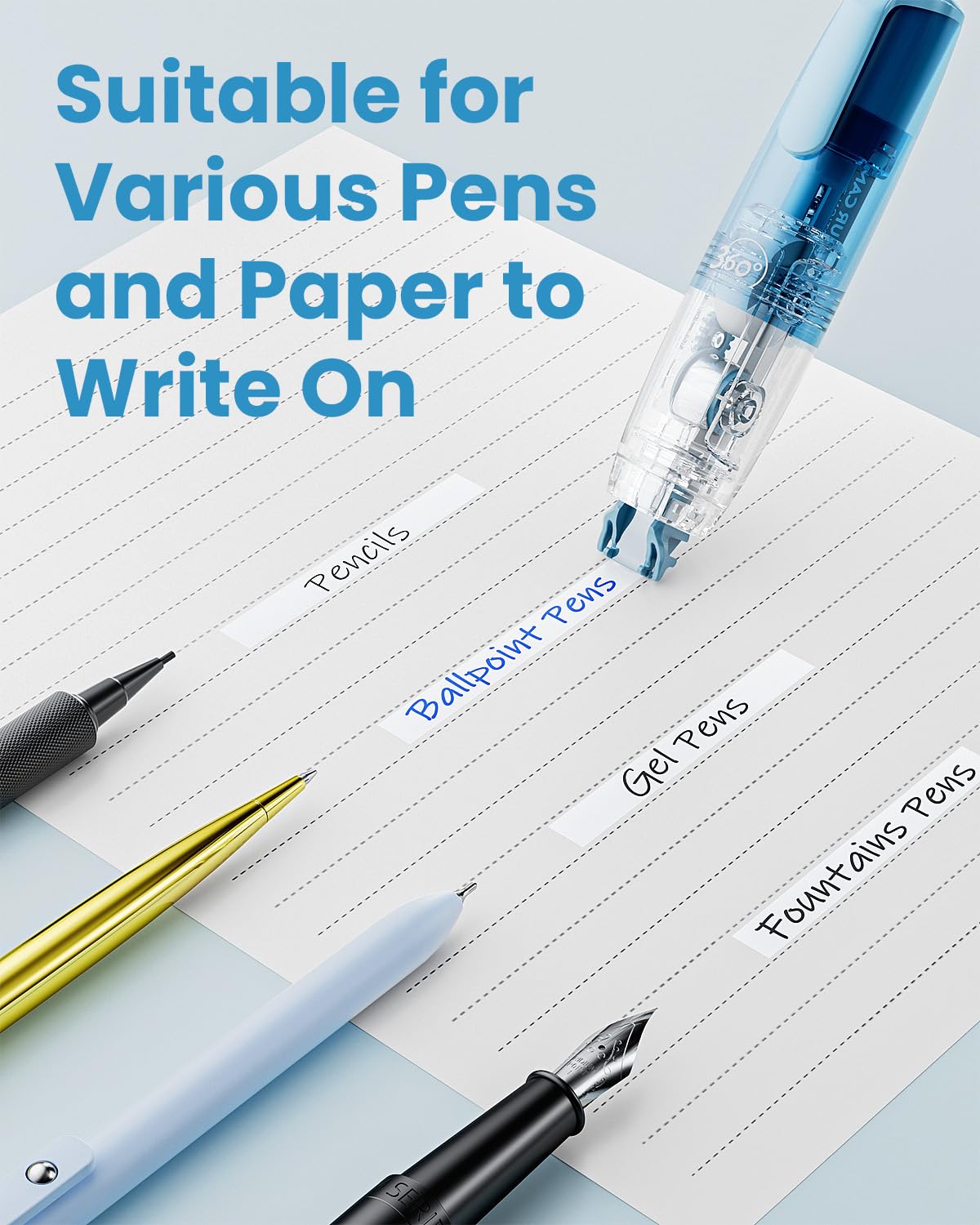 - Instant Rewriting & Precise Correction: Correct mistakes instantly without damaging paper or leaving copy shadows. The correction tape glides smoothly across various surfaces, including newspaper and photo paper, for accurate and clean coverage. Its durable adhesive resists wear and tear, keeping your notes and documents neat and professional — perfect for back to school supplies or daily office use.