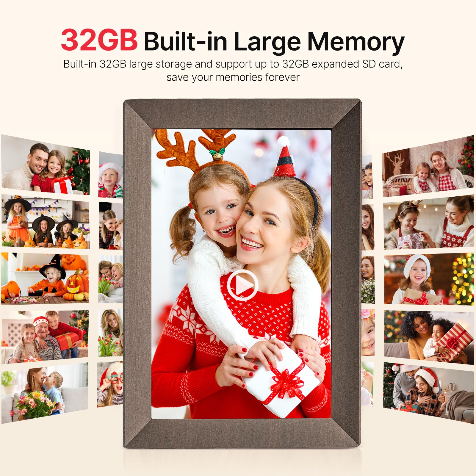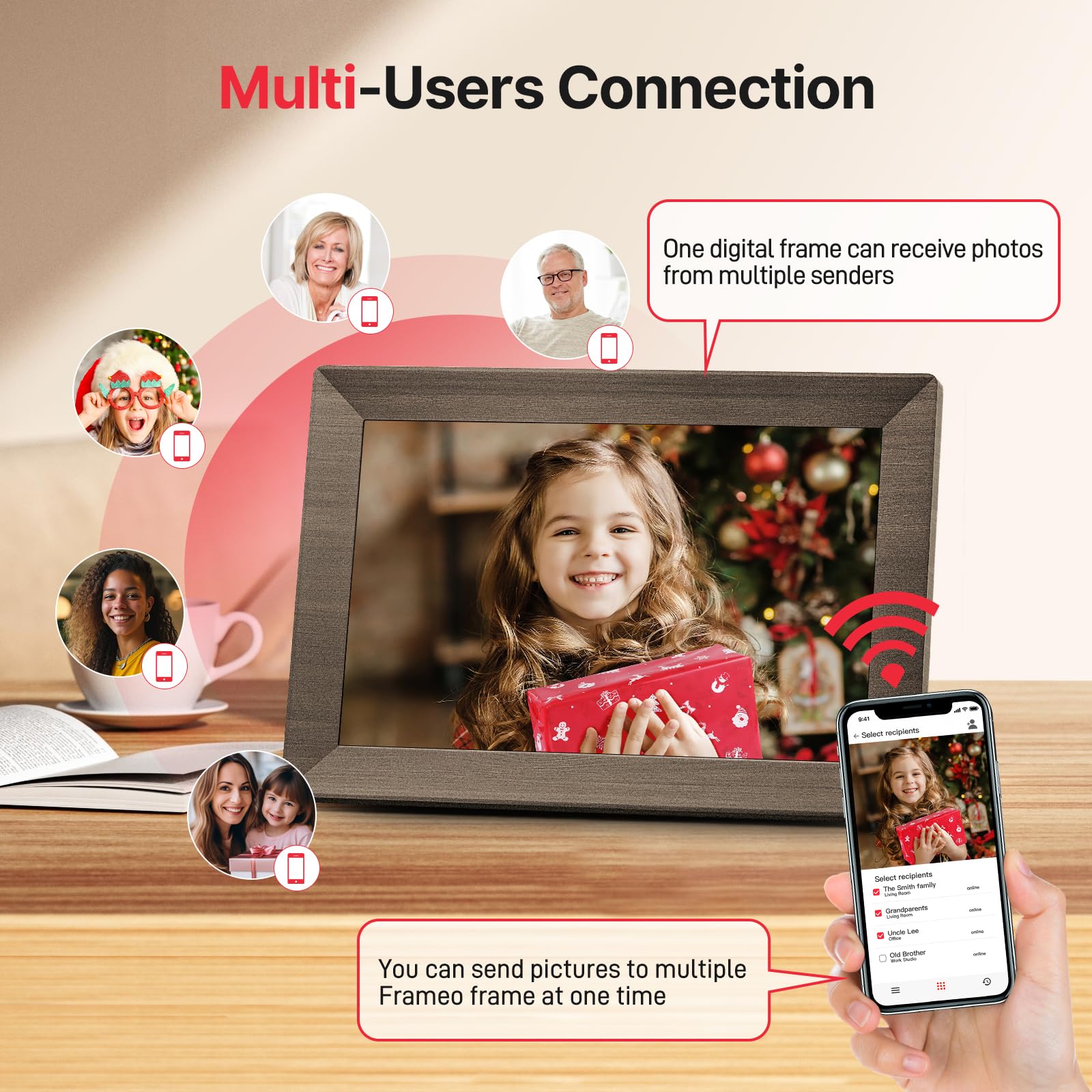 Frameo 10.1" Digital Picture Frame, Smart WiFi Digital Photo Frame with 1280x800 HD IPS Touch Screen 32GB Memory Auto-Rotate Wall Mounted, Share Photos/Videos from Phone Anywhere(Gray Wood)