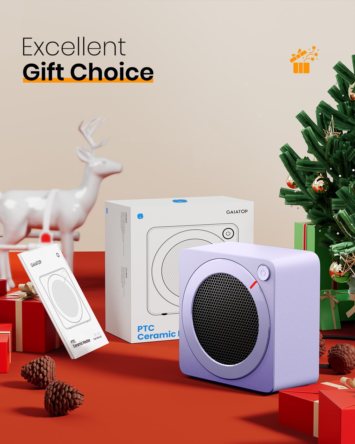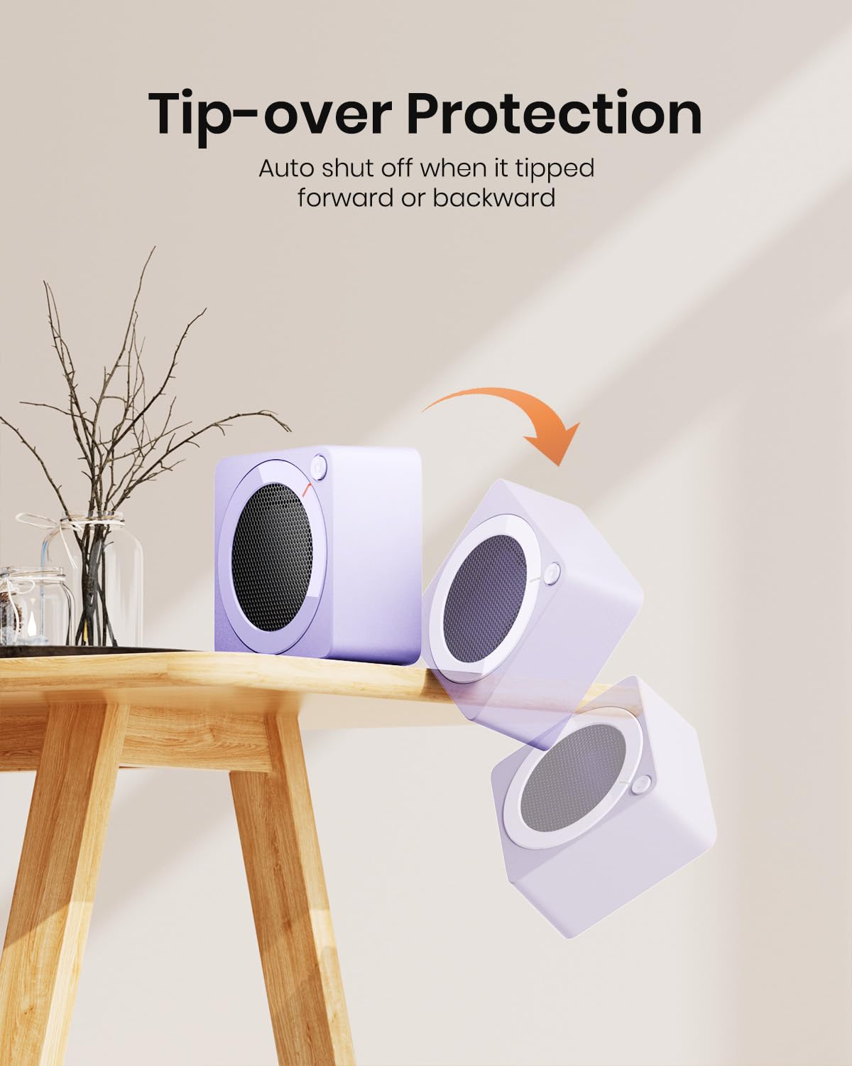 Gaiatop Mini Space Heater, Lightweight PTC Ceramic Fast Heating 500W Energy Efficient for Indoor Use, Overheating & 45° Tip-Over Protection, Portable Desk Electric Heaters for Office Home Purple