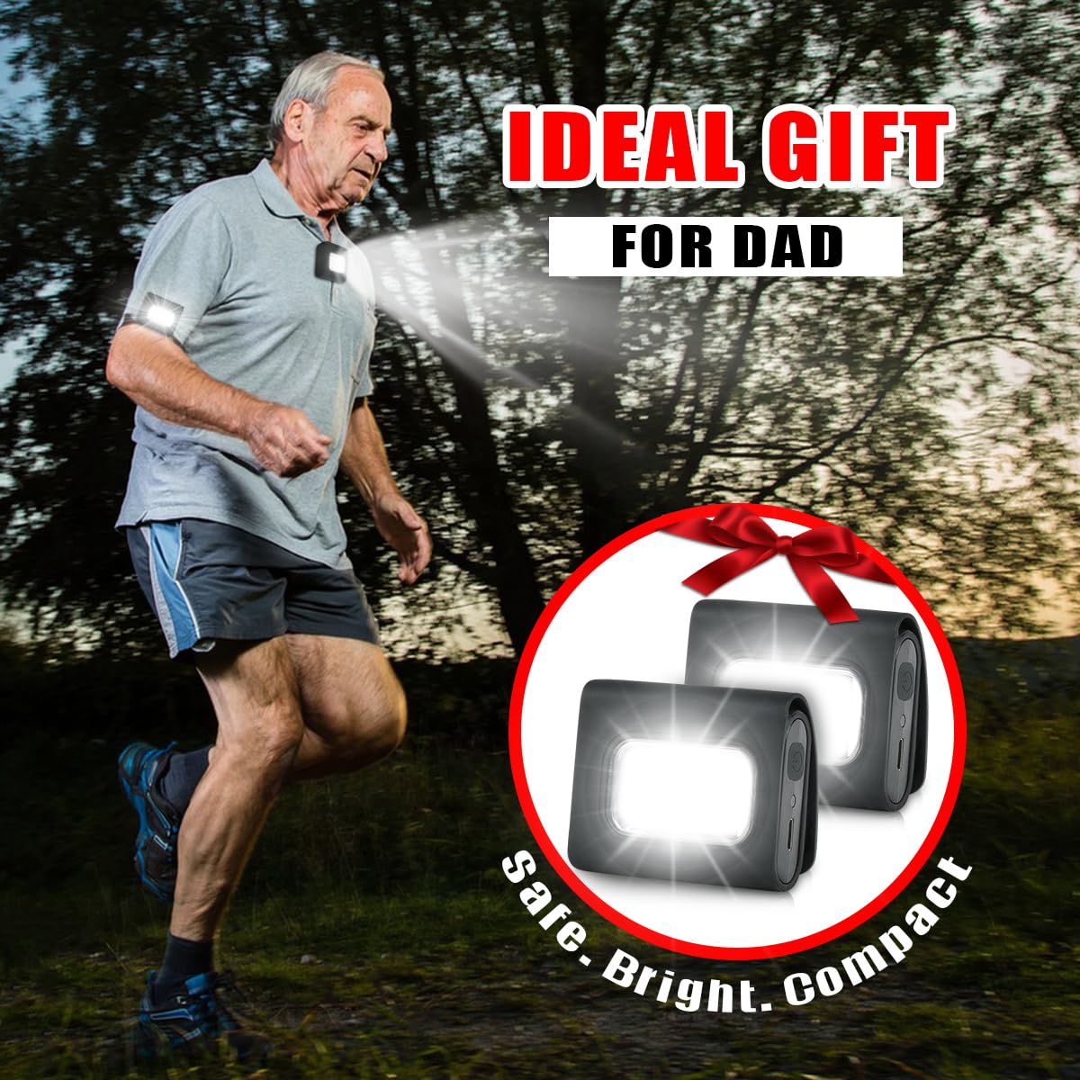 GOANDO 2 Pack Safety Jogging LED Light, Black, Water Resistant, 4 Modes, USB Charging, Strong Magnetic Clip for Night Running, Walking, Hiking