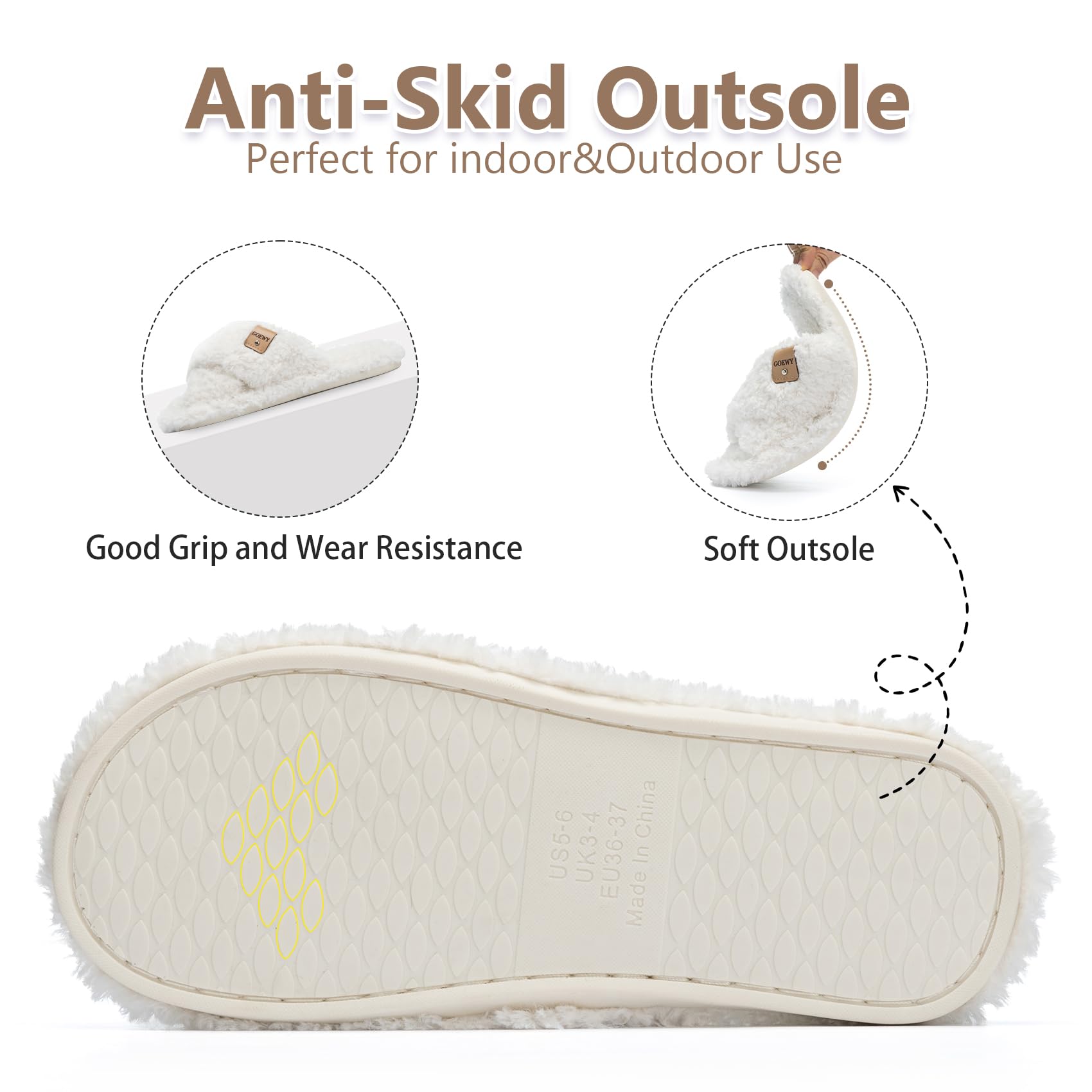 - BREATHABLE AND VERSATILE: The open-toe design keeps your feet breathable and sweat-free throughout the day. Cross band with printed GOEWY brand leather label make the ladies slippers look more delicate and cute. Suitable to match with any of your outfits, dresses, skirts, jeans, bathrobes and so on.