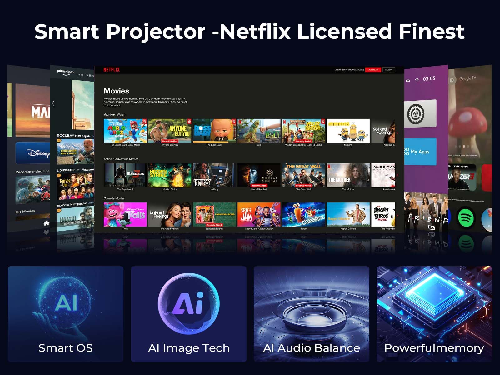 - Smart Projector with Netflix-Certified: GooDee upgraded YG600-Movin got the authorization from Netflix/Prime Video/YouTube etc which allows you play video movie directly. Mirror or cast from mobile phone cannot play movie (for Netflix/Amazon Prime Video/Hulu/Disney+ etc) due to copyright issue. Support wireless screen mirroring for IOS, Android, and Windows devices