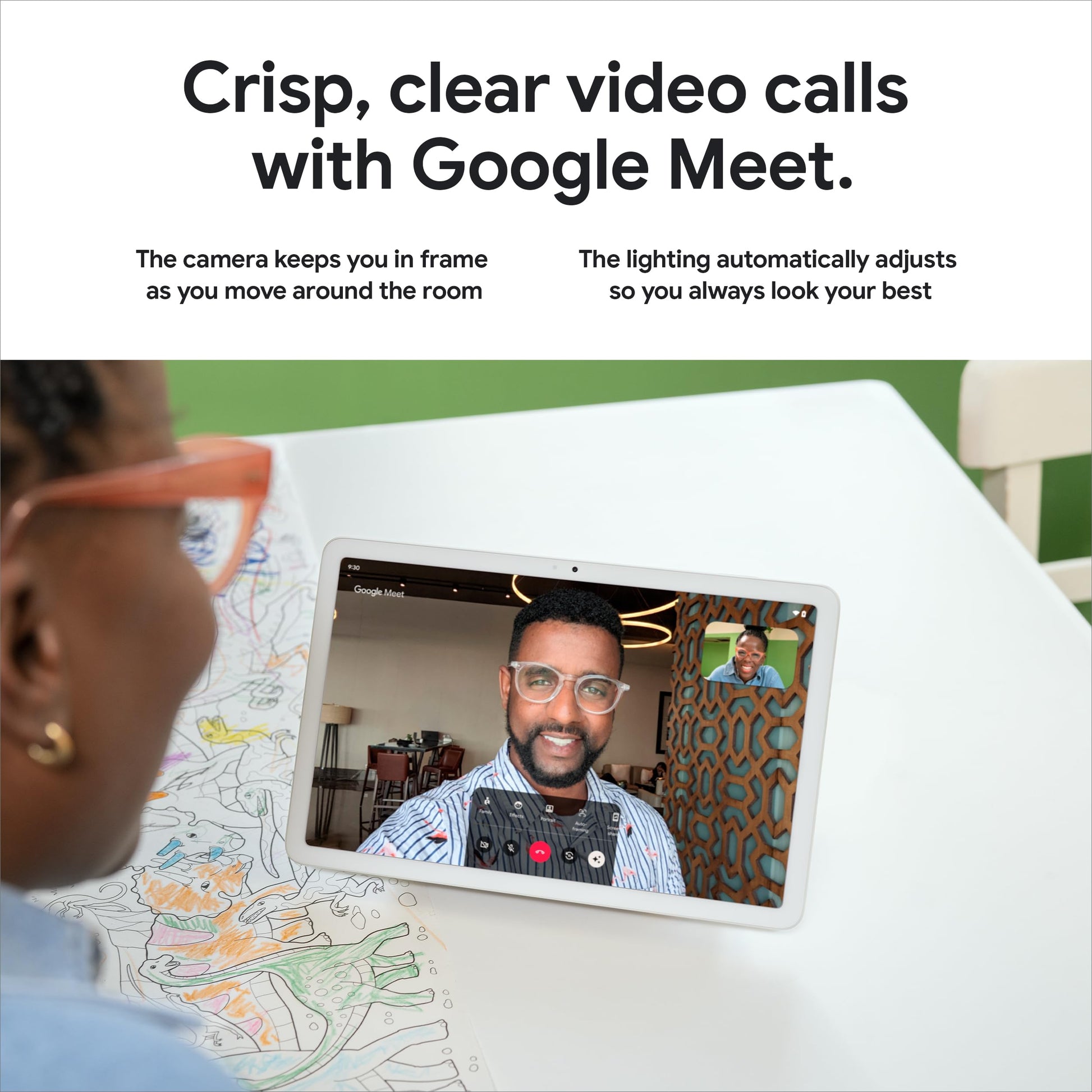 - The Pixel Tablet comes with Google Meet for HD video calling; the camera follows you so you can move around the room while staying in frame, and automatic lighting adjustments keep you looking your best