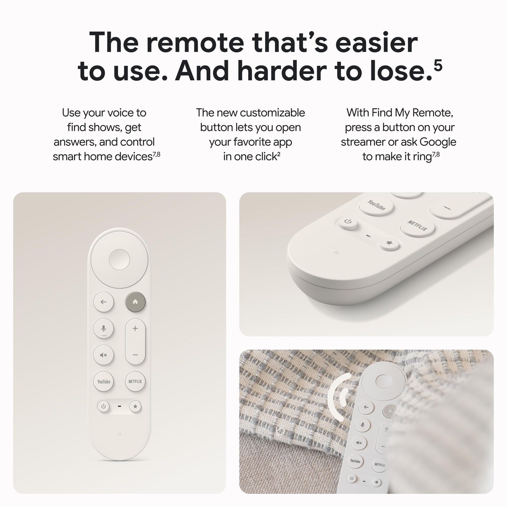 - With the redesigned remote, use your voice to find shows, get answers, and control smart home devices[7,8]; the customizable button lets you open your favorite app or the home panel in one click; and easily find your lost remote by making it ring
