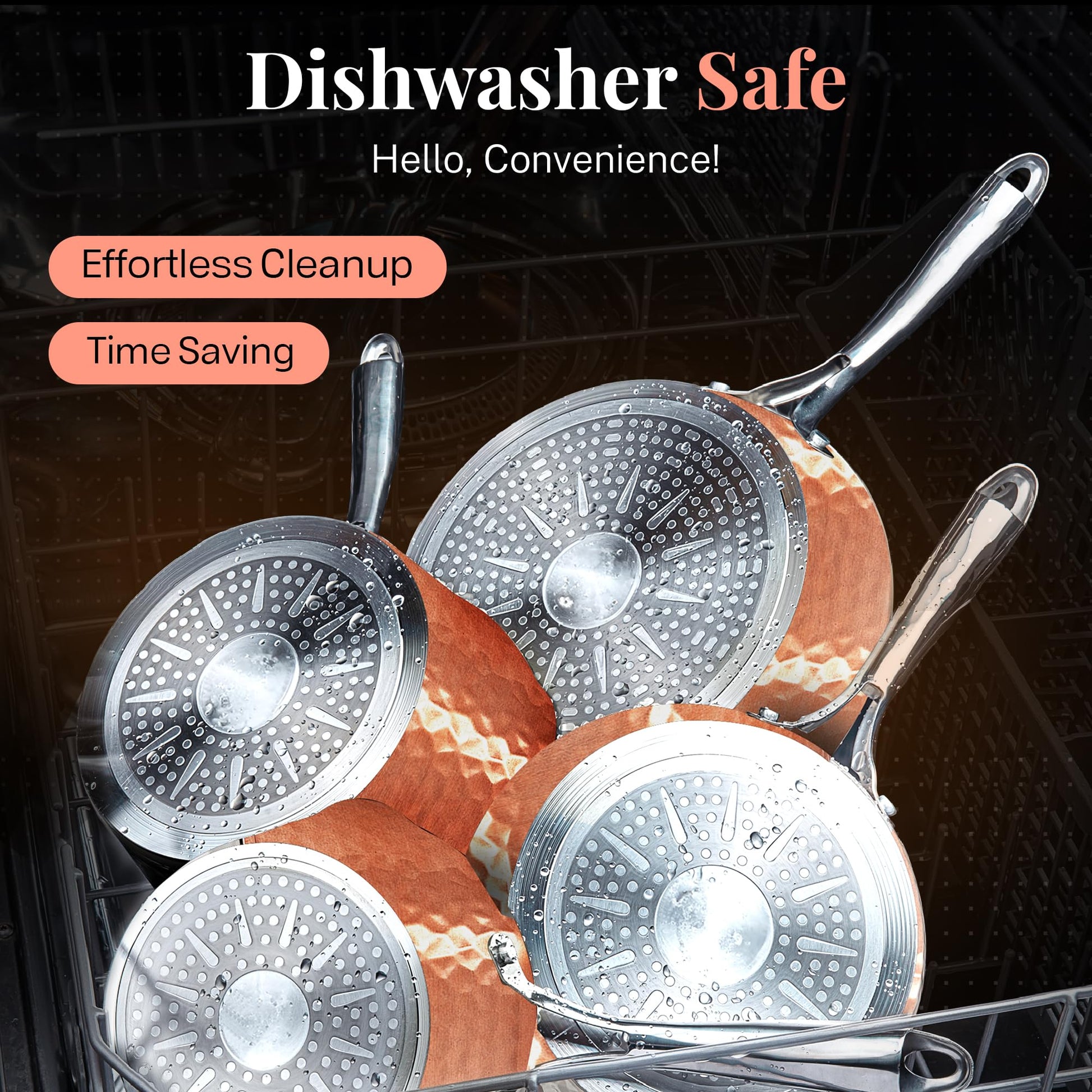 - EFFORTLESS CLEANUP, DISHWASHER SAFE: Spend less time with cleanup! After all the cooking and prepping is done, place cookware in the dishwasher for quick and easy cleanup.