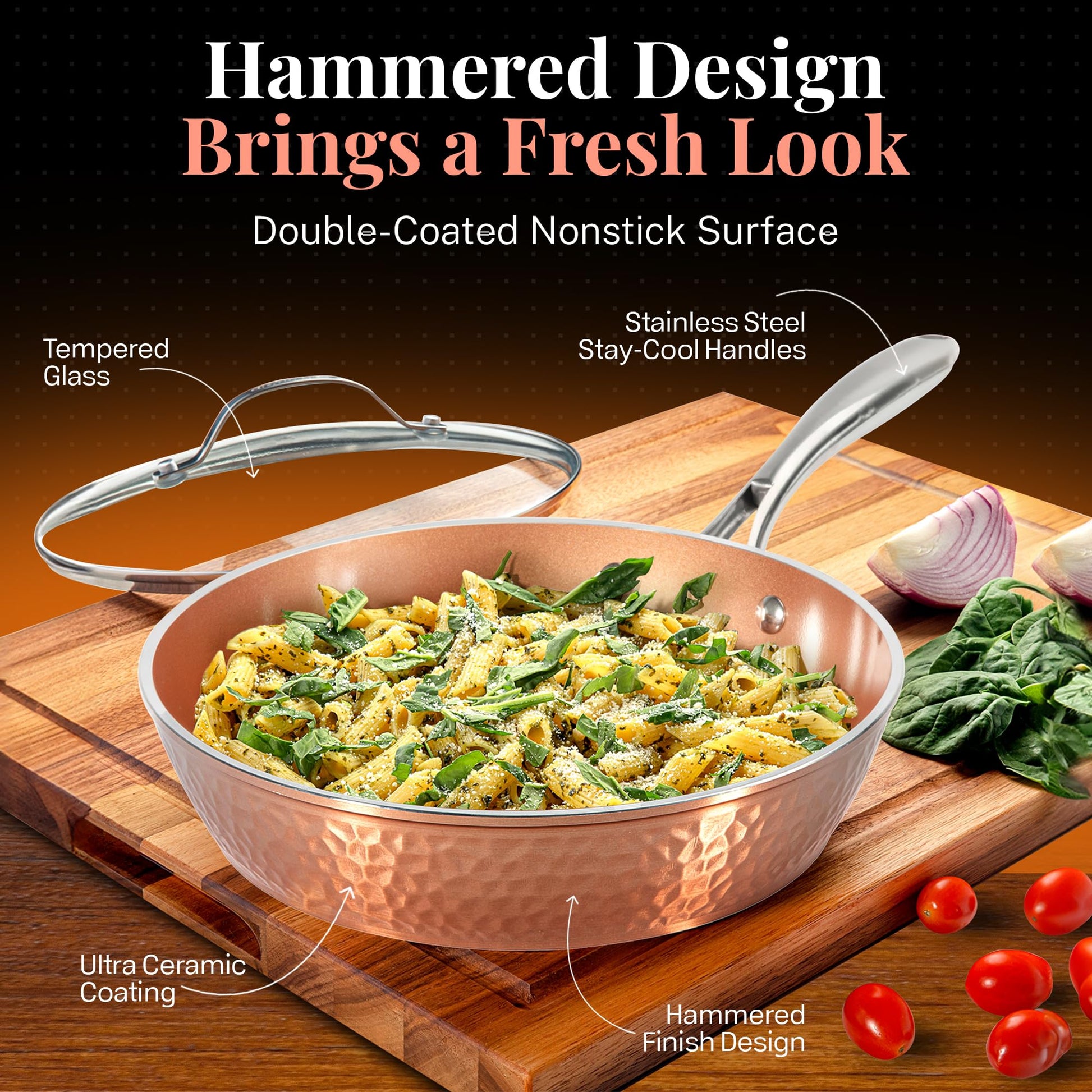 - GOTHAM STEEL COOKWARE: With over 30 million happy customers, Gotham Steel has revolutionized kitchens across the world with the introduction of the nonstick ceramic copper cookware! New for 2023, this set has been improved in every area including the nonstick coating, stay cool handles, exterior finish and durability, including adding diamonds to the surface to ensure the pan doesn’t scratch!