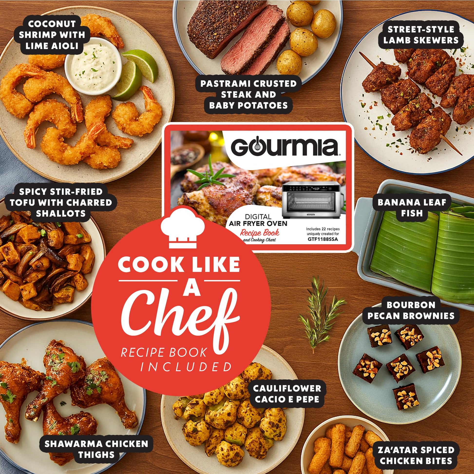 Gourmia Toaster Oven Digital Air Fryer - Convection Mode with 4 Slice Capacity, 3 Rack Positions, 12 Presets, Toast, Bagel, Bake, Roast, Broil, Dehydrate, Popcorn, Fits 9" Pizza, Stainless Steel