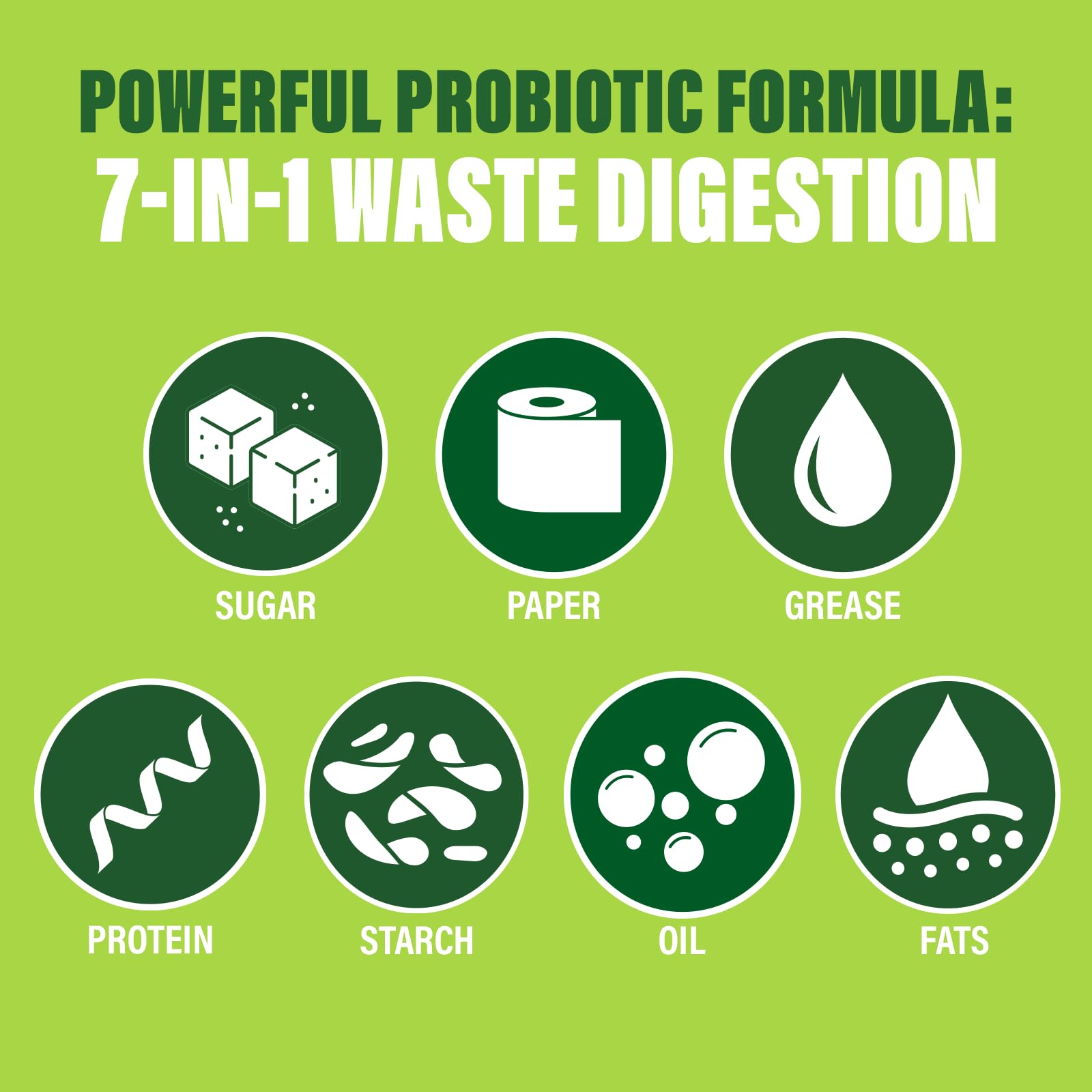 - 7-IN-1 SEPTIC WASTE DIGESTION: Green Gobbler Septic Saver Pods use a powerful probiotic formula to break down the most common substances that create septic tank backups, overflows and foul odors including toilet paper, fats, oils, grease, proteins, sugars & starches. It can also be used to treat cesspools, RV & marine holding tanks and drain & leach fields.