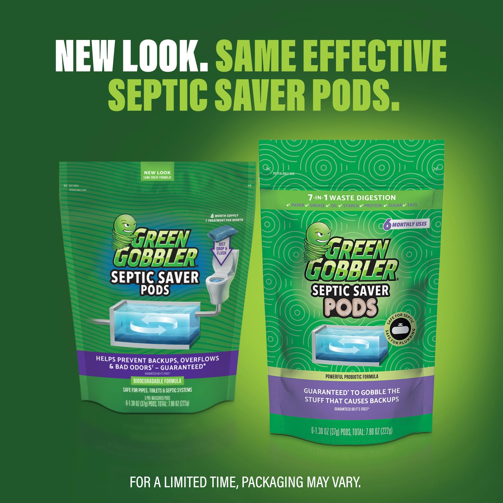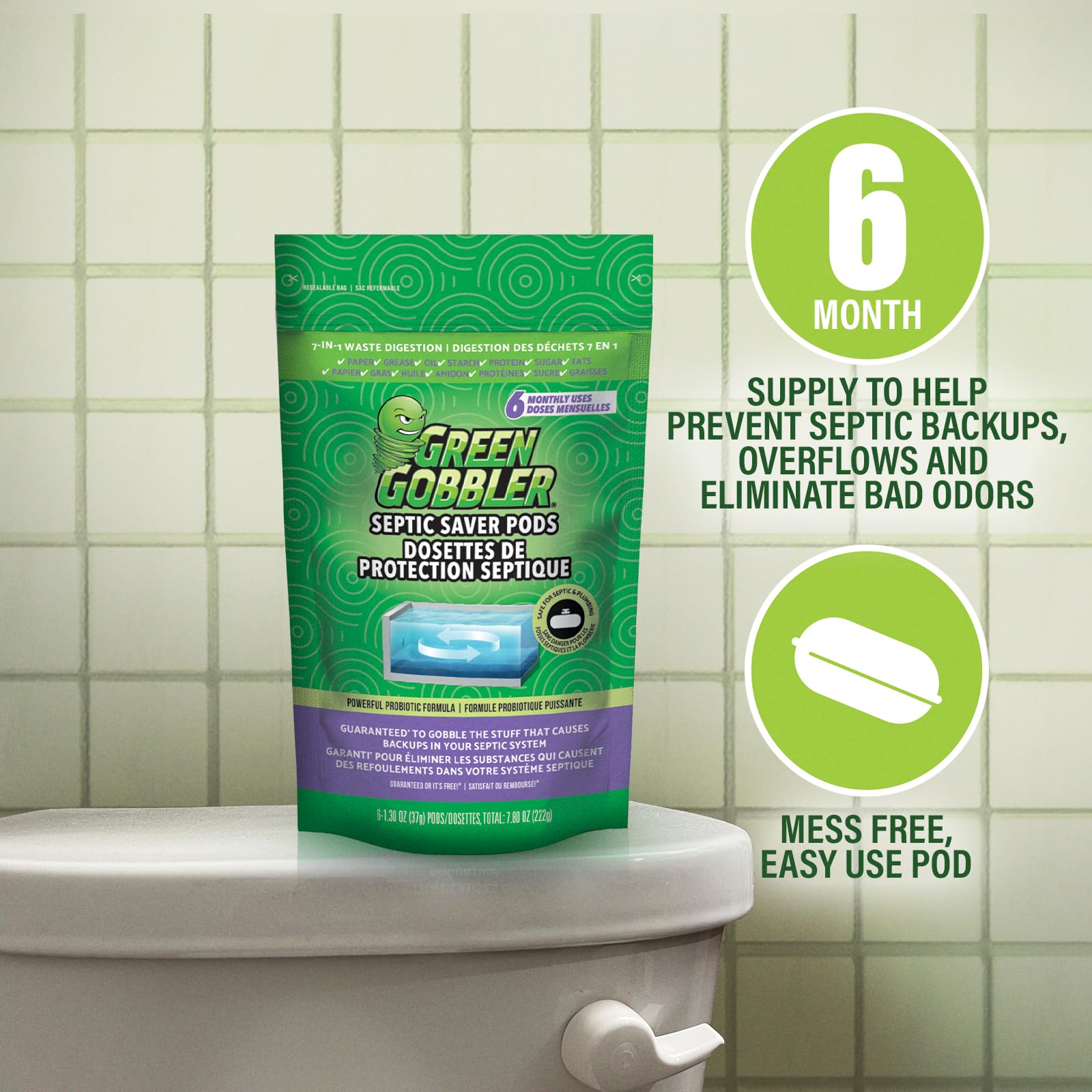 - DROP A POD TO HELP PREVENT BACKUPS & OVERFLOWS: Protect your septic tank with Green Gobbler Septic Saver. Simply drop a pod into your main floor toilet once a month and flush. It's that easy.