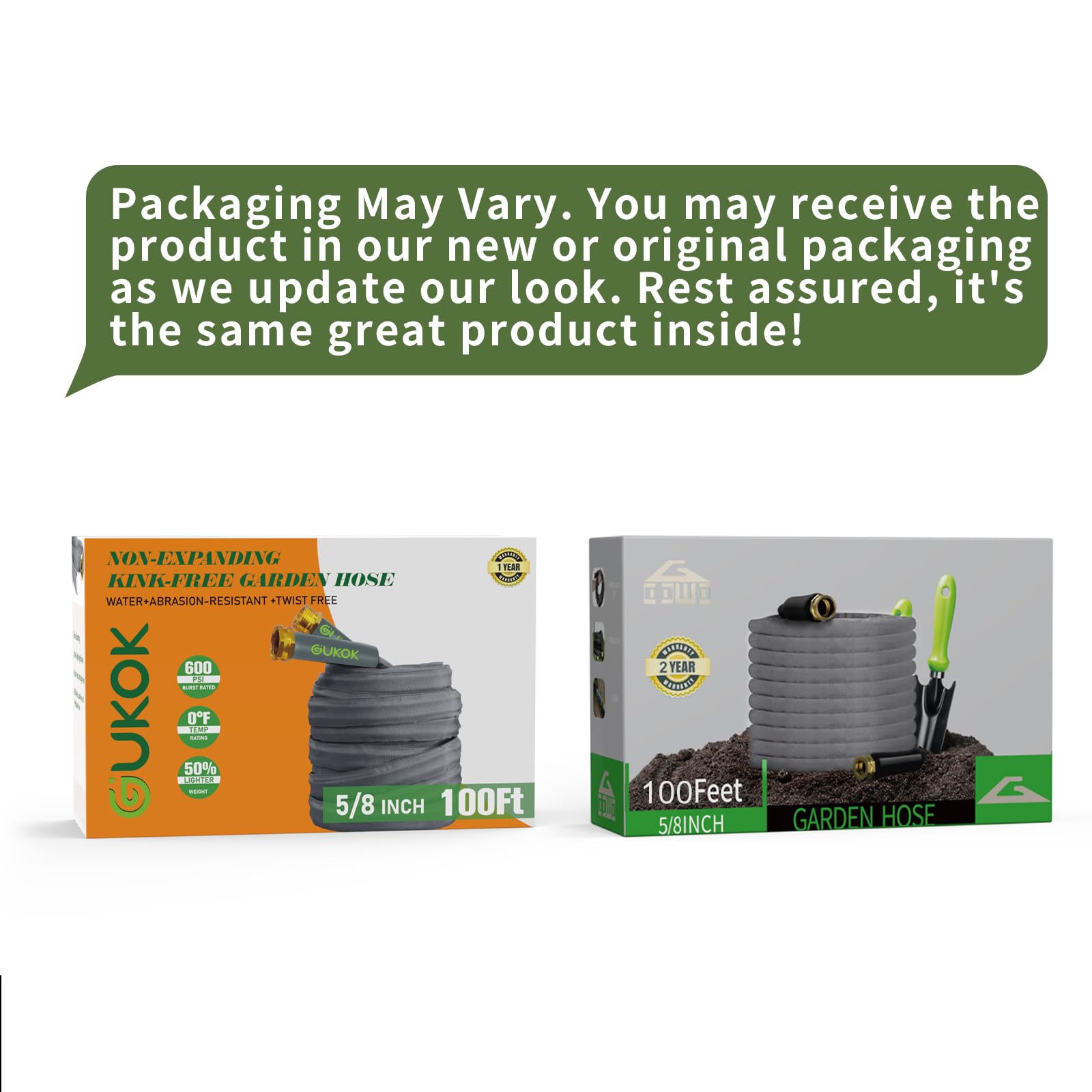 GUKOK 2025 Upgraded 50FT Non-Expanding Garden Hose, Ultra-Light & Flexible Water Hose - Burst-Resistant, Kink-Free, High-Pressure, All-Weather Use for Lawns, Gardens, and Outdoor Cleaning