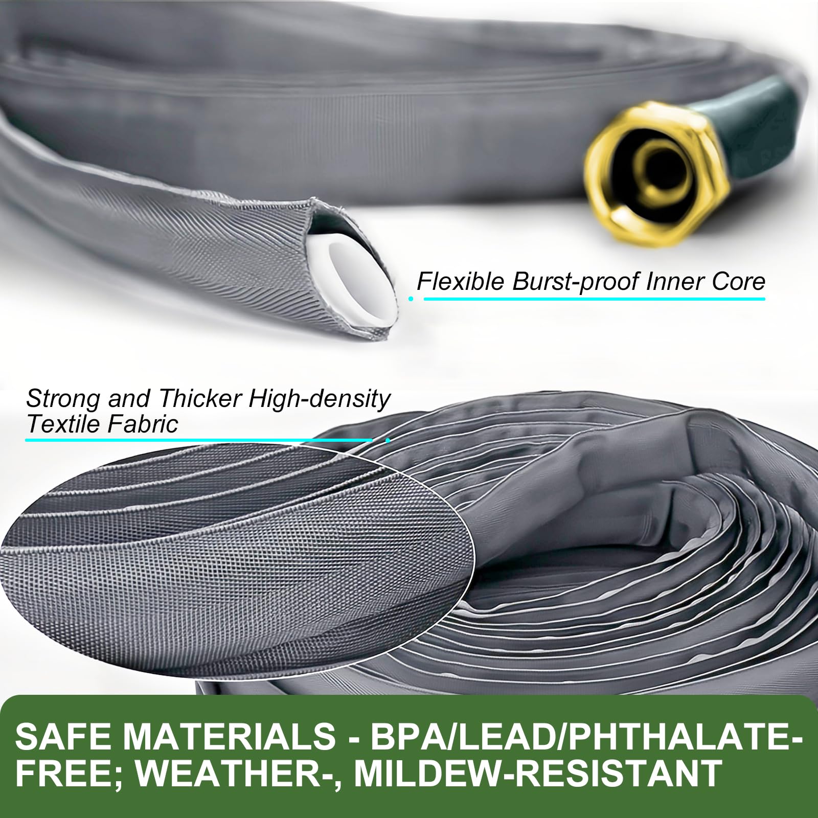 - Durable & Safe for Your Family: Built with marine-grade fabric and lead-free materials, our hose is both tough and safe. It withstands high pressure and harsh conditions while keeping your water clean and safe for your family and pets.