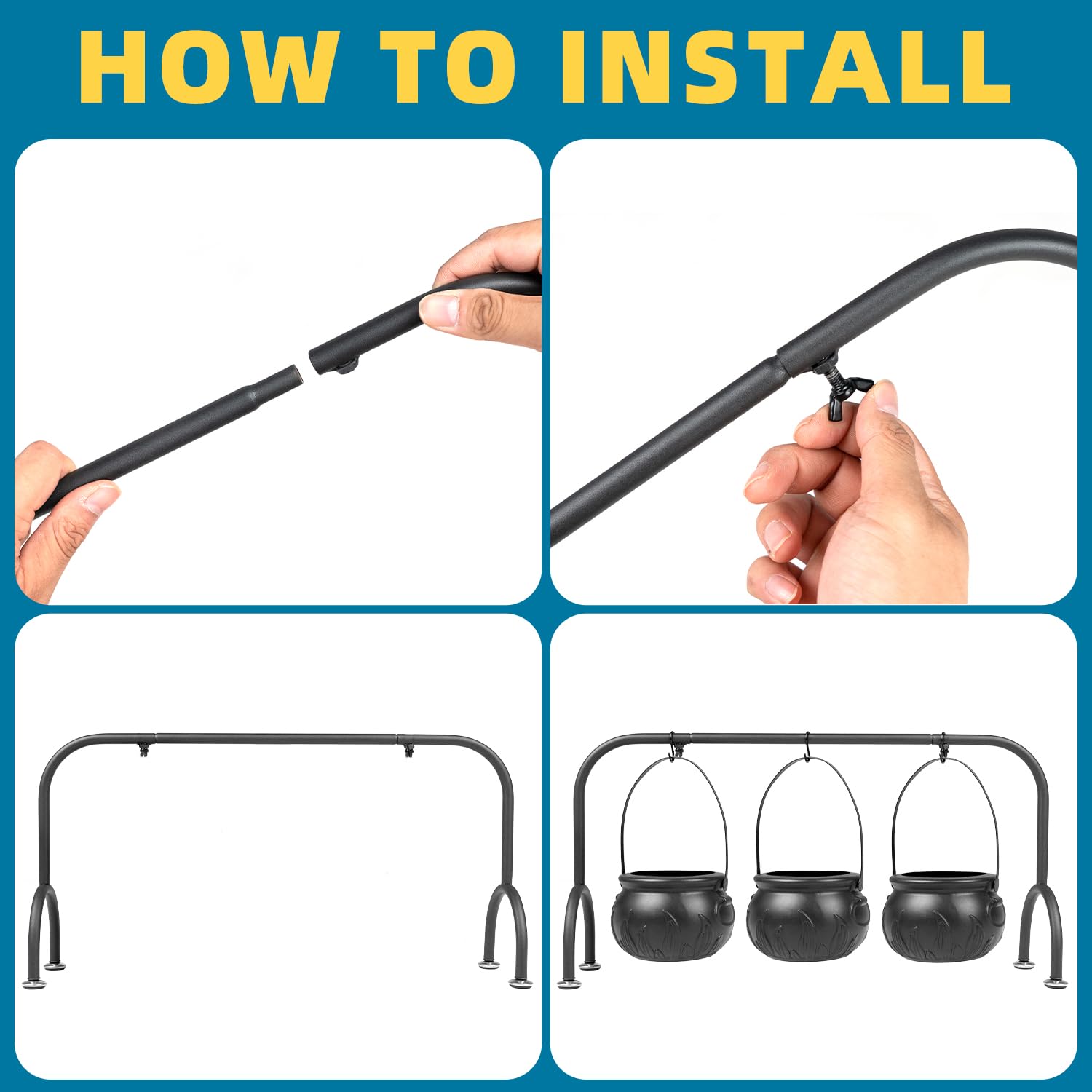 - Durable Material: Made from sturdy black plastic, the Halloween cauldrons are lightweight yet durable, resistant to minor drops and easy to clean. Besides the quality of this iron rack is also great which can stand firmly on the table.
