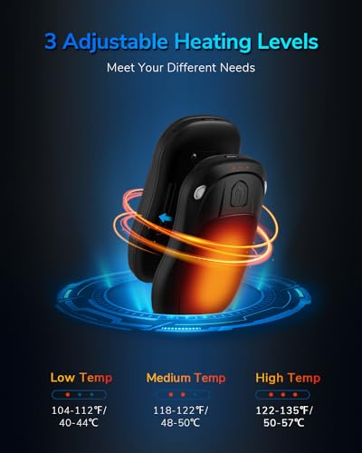 - 【2s Fast Heating & 3 Heating Levels】With the safe rapid heating technology, you can embrace the even warmth within 2 seconds of turning on the electric hand warmer. Choose from low, medium or high temperature modes for personalized comfort, and meet your different needs, making the rechargeable hand warmer perfect companion for those cold days.