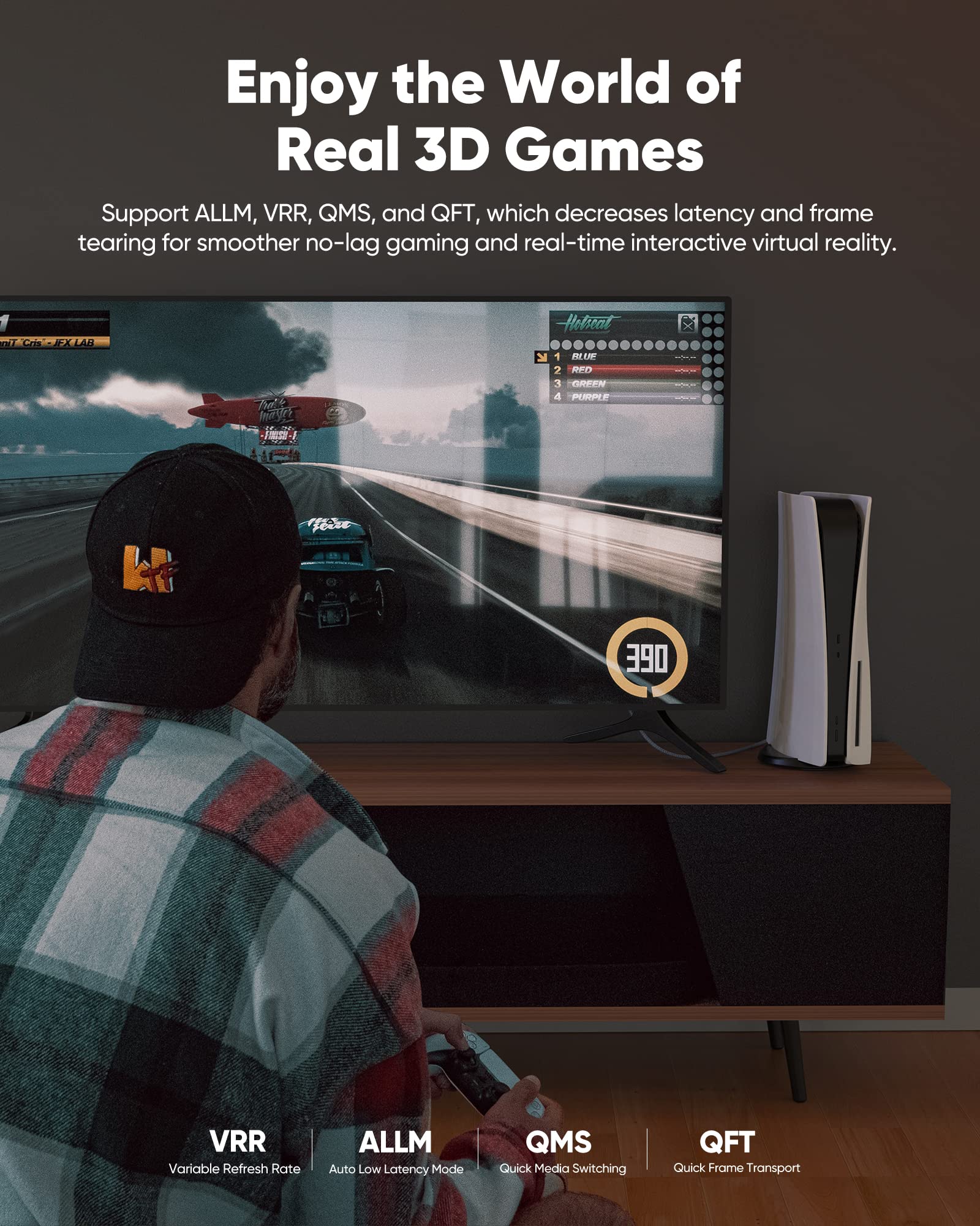 - For Game Enthusiasts: This 8K Ultra High Speed HDMI Cable can achieve a super smooth picture of 4K@120HZ. Its latest game mode supports variable refresh rate, maximizes the value of the graphics card and CPU to obtain a smoother and more detailed picture.
