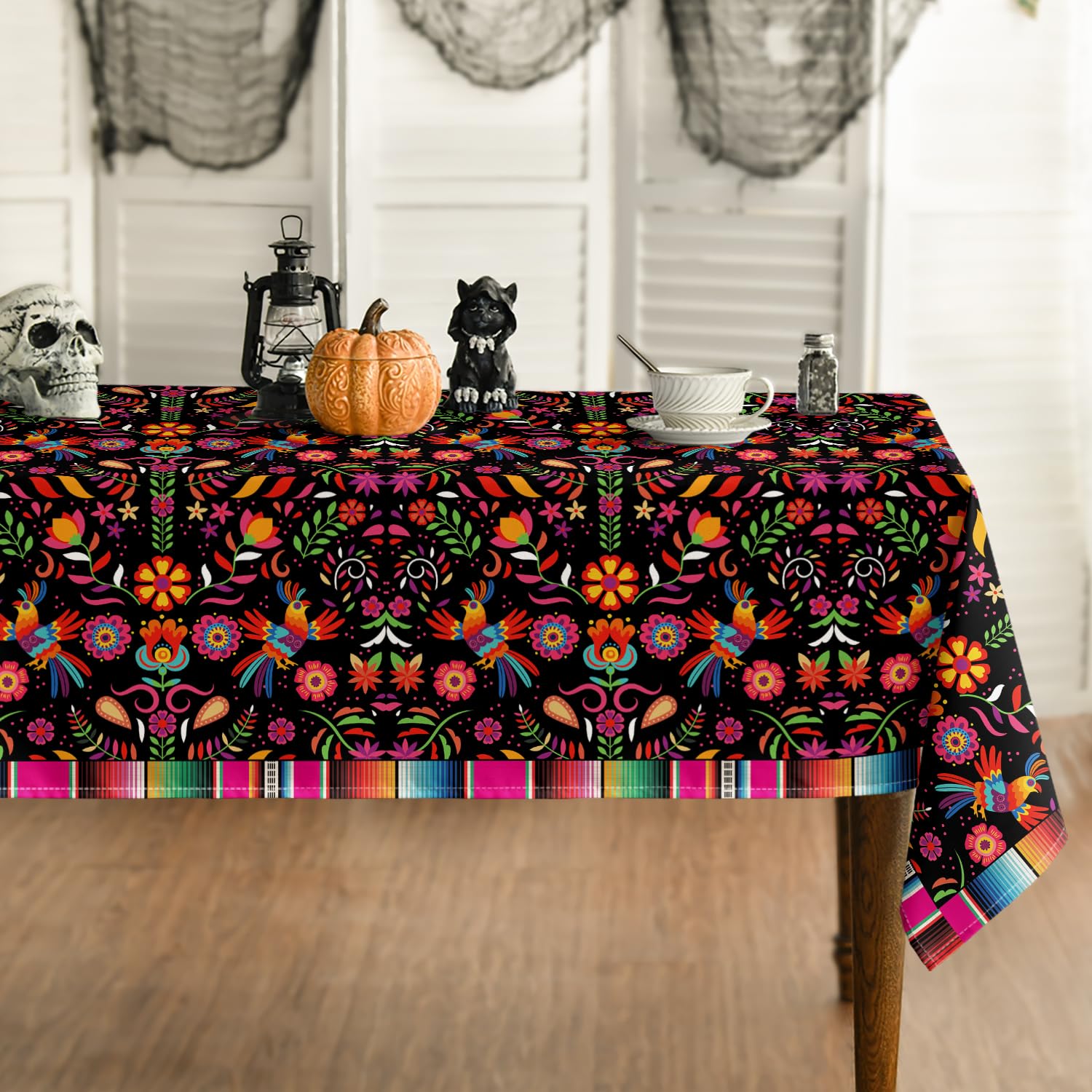 Horaldaily Mexico Tablecloth 60x120 Inch Rectangular, Halloween Cinco De Mayo Fiesta Design Black Stripes Washable Seasonal Table Cover for Party Picnic Dinner Decor