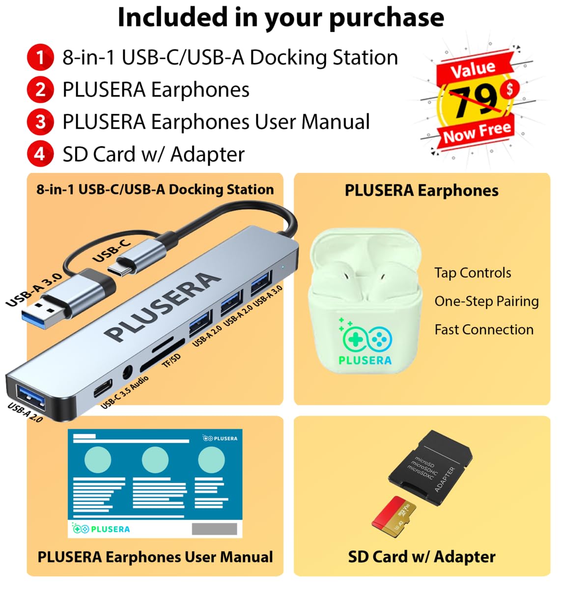 HP 14" Business Laptop Computer, 16GB RAM 320GB Storage (64GB eMMC+256GB Docking Station Set), Intel Quad-Core N4120, Windows 11 S Laptop with 1-Year Microsoft Office 365, PLUSERA Earphones, White