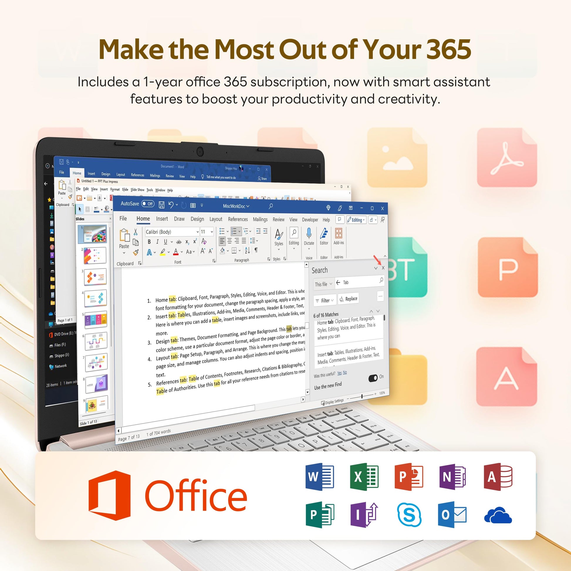 - 【Intel Graphics】Enjoy vibrant colors and sharp details that bring your everyday content to life.【HD Webcam】Provides high quality video calls, virtual meetings and online interactions.【Wi-Fi 6】Experience blazing-fast speed, reduced latency, and uninterrupted performance for seamless online gaming.【1 Year Office 365】Take your productivity and work mobility to the next level with the Microsoft 365 Office Suite (1 year subscription included).
