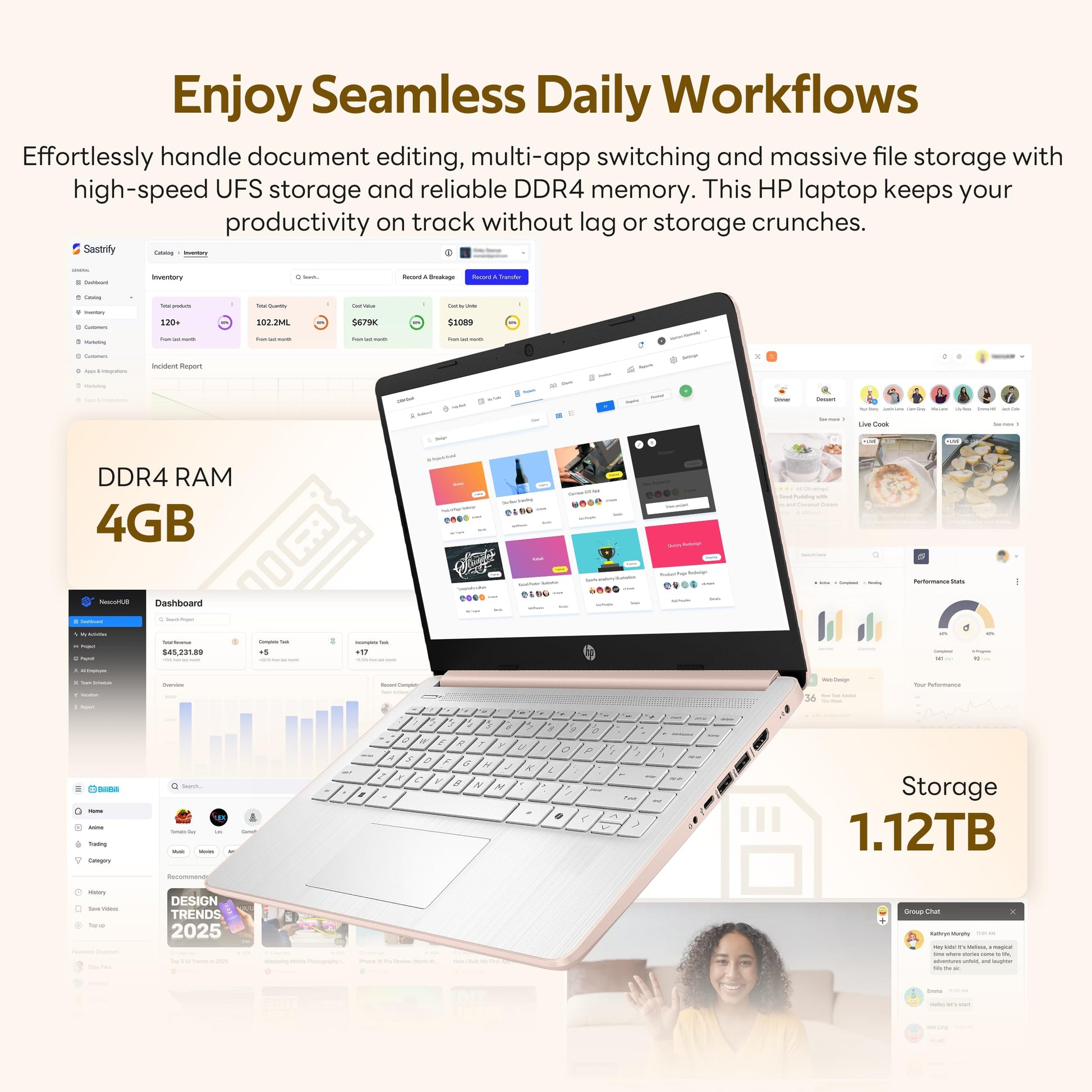HP Flagship 14" HD Student&Business Laptop with AI Copilot, 13th Gen Intel 4-Core, 4GB RAM, 1.12TB Storage (128GB UFS + 1TB Docking Station), 1 Year Office 365, Wi-Fi 6, Win 11 S, Pale Rose Gold