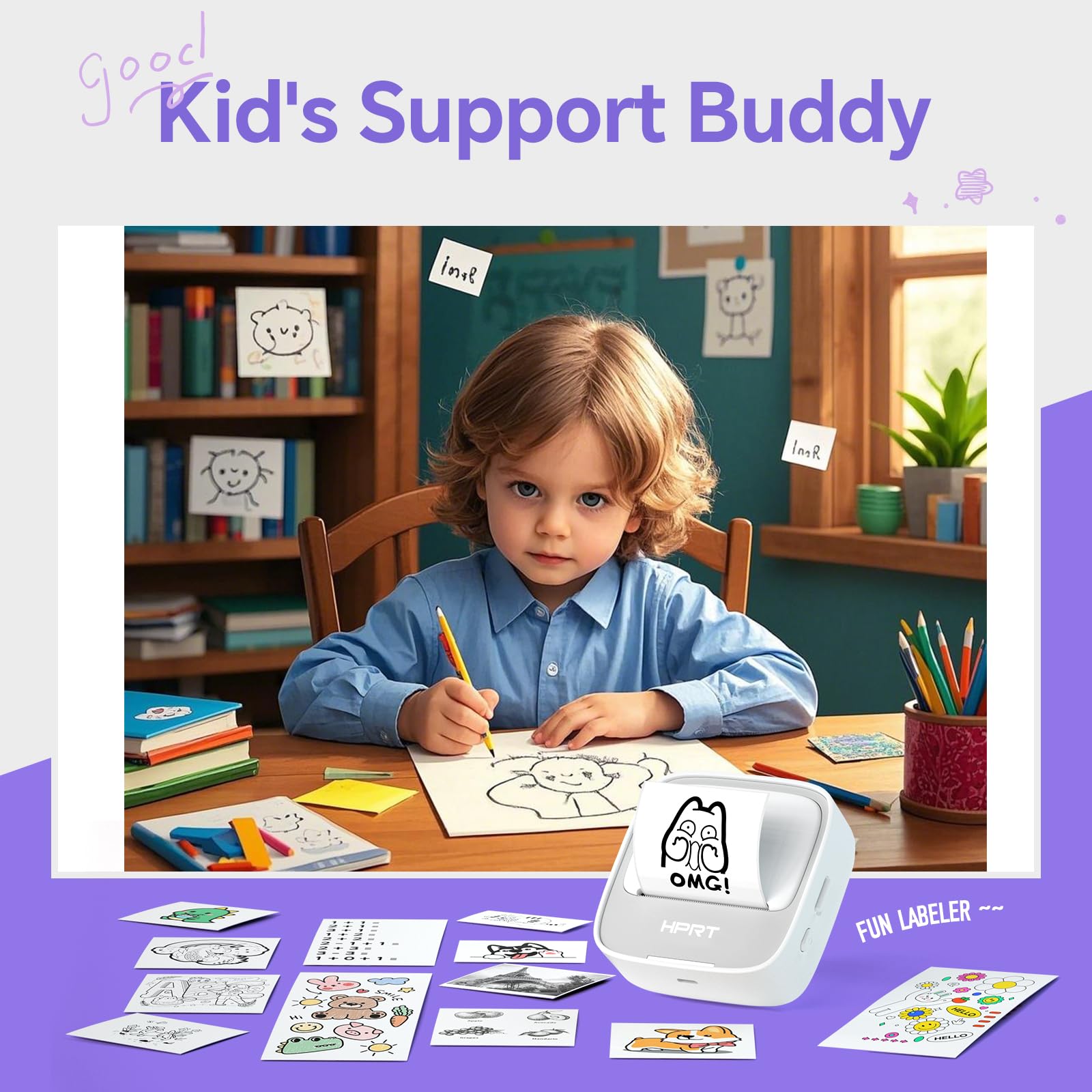 HPRT Mini Printer Sticker Maker with 1 Rolls Paper, Bluetooth Portable Thermal Printer, Print Pods Printer for Pictures, Study Notes, Kid's DIY Creation, Memo, List, Compatible with Phone