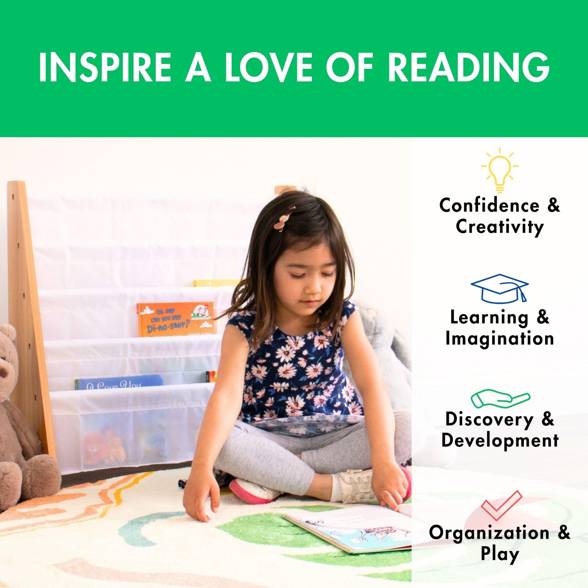- Versatile Storage Solution: Four deep fabric pockets hold reading books, board books, coloring books, and magazines of all sizes. This kids book shelf organizer provides ample space for all their favorites, from storybooks to educational materials.