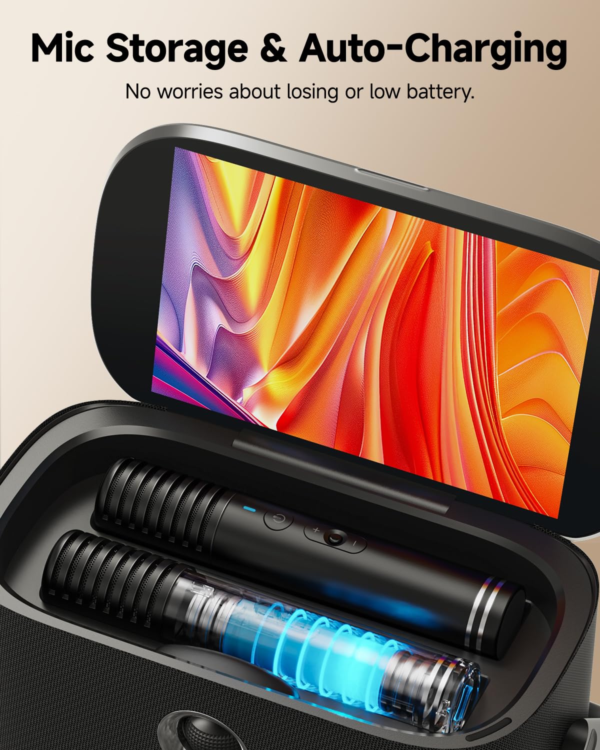 - ULTIMATE BLUETOOTH MIC DESIGN: Portable karaoke machine with 2 wireless microphones, 8 sound effects and EQ adjustments. Each mic adjusts independently without interference. Super-cardioid pickup ensures clear, natural sound, making you the superstar on stage. Top speaker slots provide storage & charge the mics, so no worries about loss or low battery. Whether you're a karaoke host, DJ, venue manager, wedding planner, or in any other role, the Shell S2 karaoke system is your best audio assistant