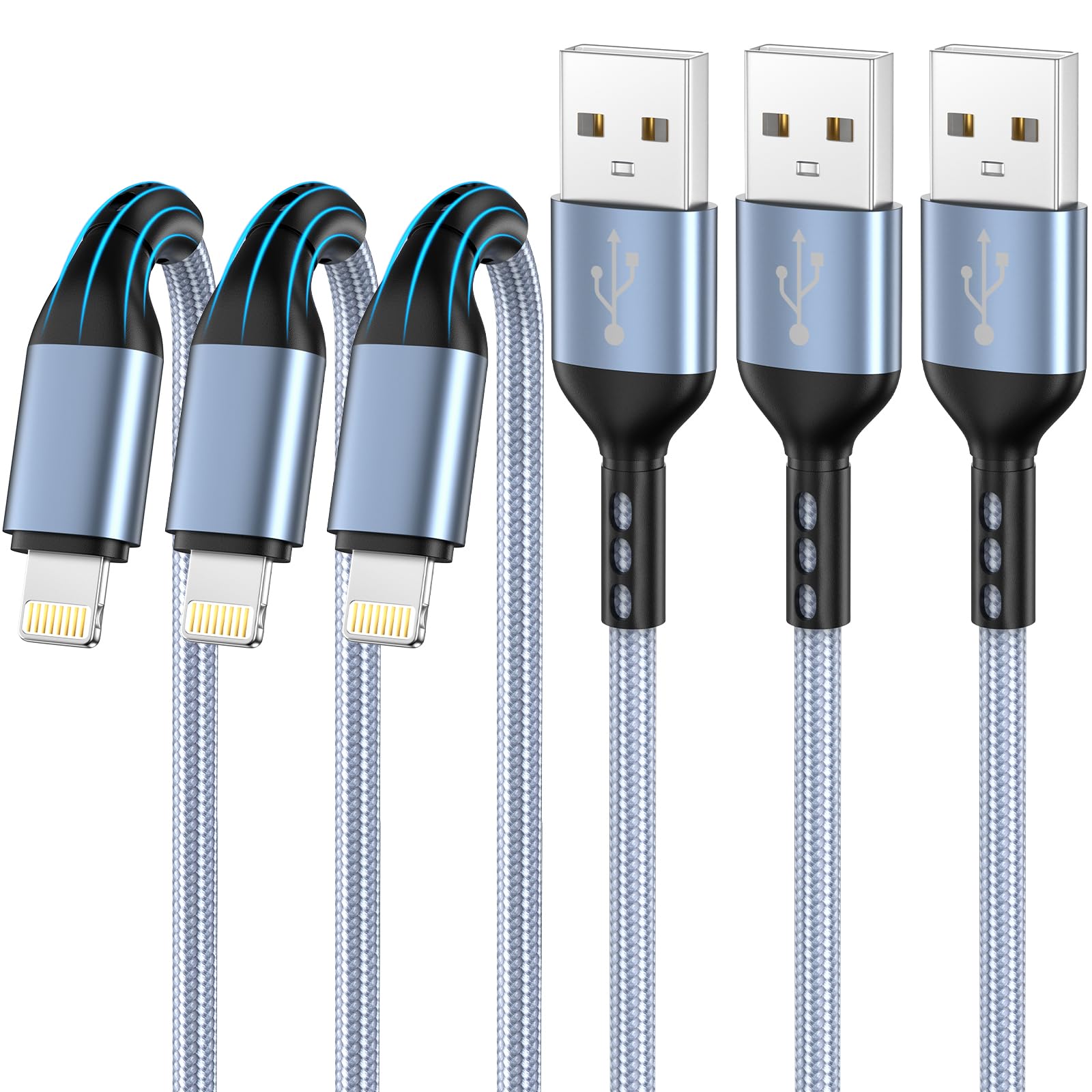 - 【Extra-Long 10ft Length for Ultimate Convenience】Each cable in this 3-pack offers a generous 10-foot length, providing ample reach for charging your iPhone, iPad, or other Lightning devices from across the room, in the car, or at your desk. No more struggling with short cables