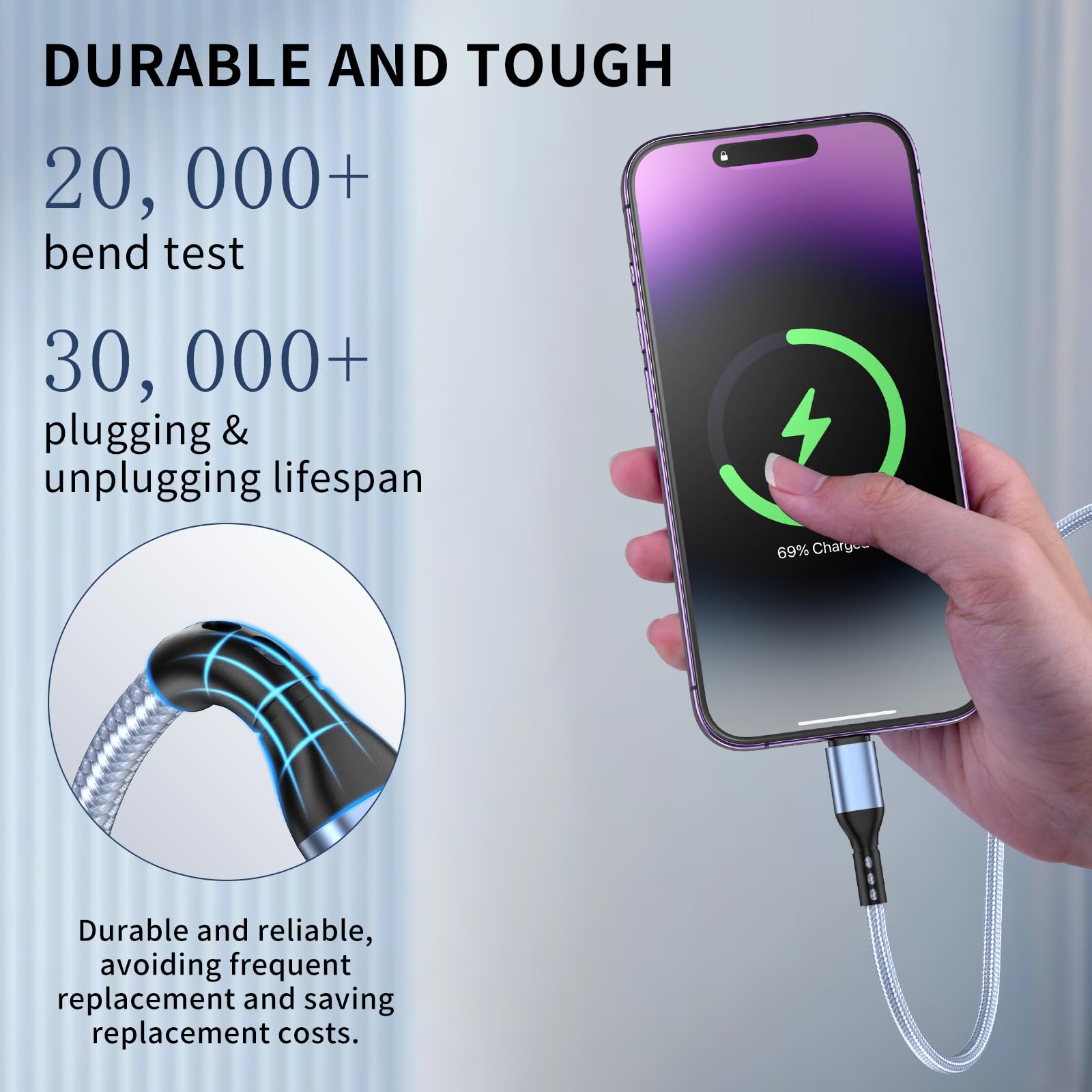 - 【MFi-Certified for Safe & Reliable Charging】Officially MFi-certified by Apple, these Lightning cables ensure 100% compatibility with your Apple devices. Built with premium materials and advanced safety features, they protect against overheating, overcharging, and short circuits