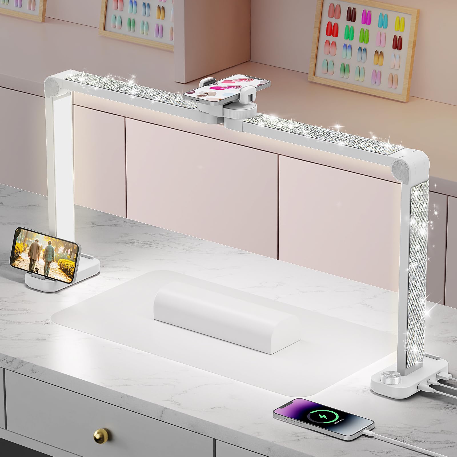 iVict Nail Desk Lamp, 34" Nails Tech Light with Phone Stand, 0-100% Adjustable Brightness, 3000K-6000K Color Temperature Led Desk lamp for Nail, Tattoos, Eyebrows, Beauty(Diamond, Large)