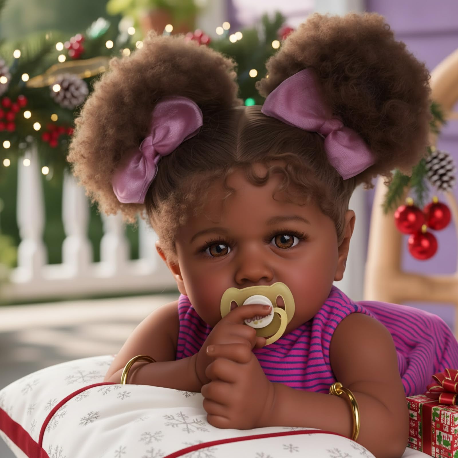 JIZHI Reborn Baby Dolls Black - 22 Inch Lifelike Soft Body Realistic-Newborn Baby Dolls Taupe Eyes Caramel Skin Tone Pink Striped Skirt Real Life and Toy Accessories Gift for Kids Age 3