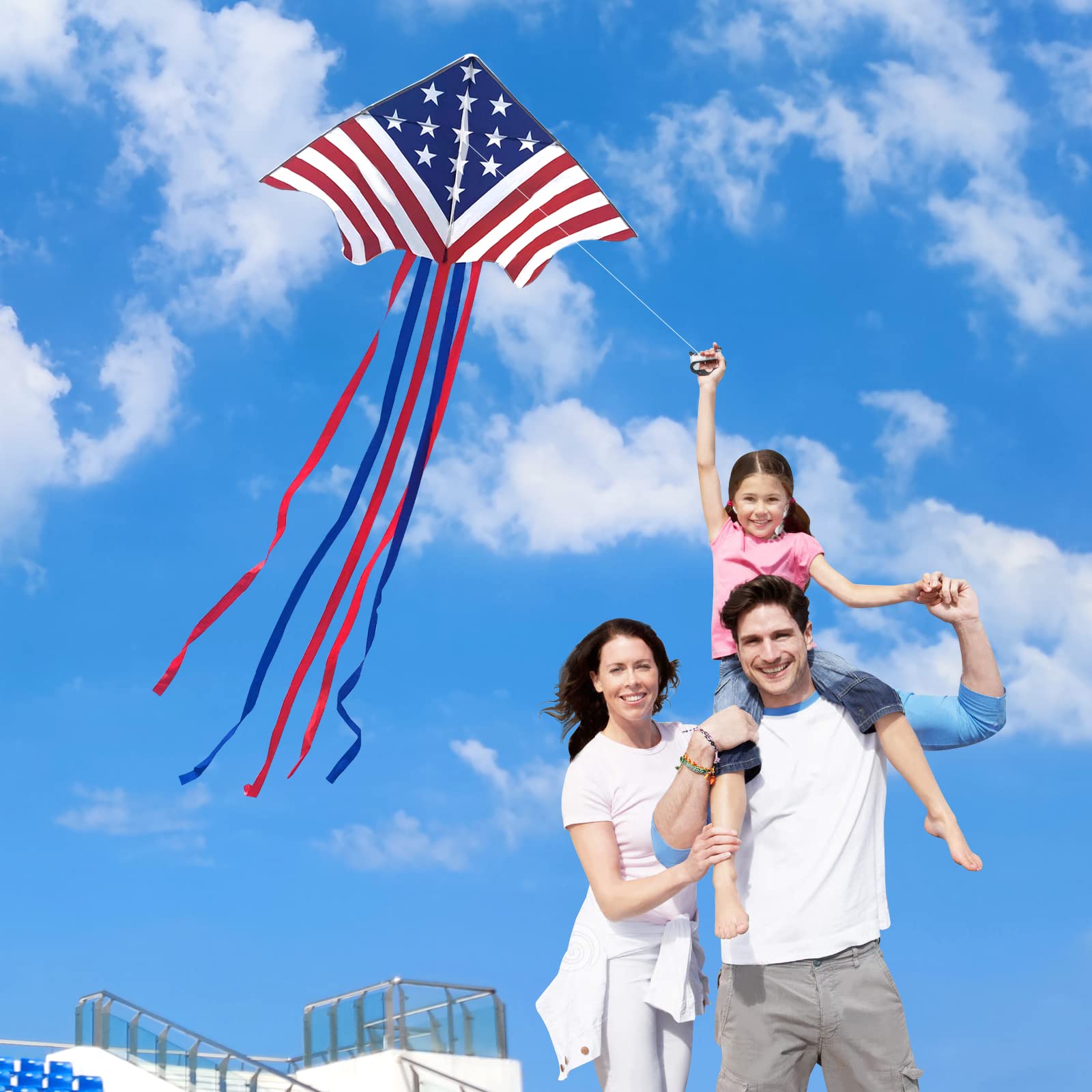Kaiciuss American Flag Delta Kite for Kids & Adults Easy to Fly Large, The Easiest Single Line for Beach, it Comes with 300ft String Kite Handle