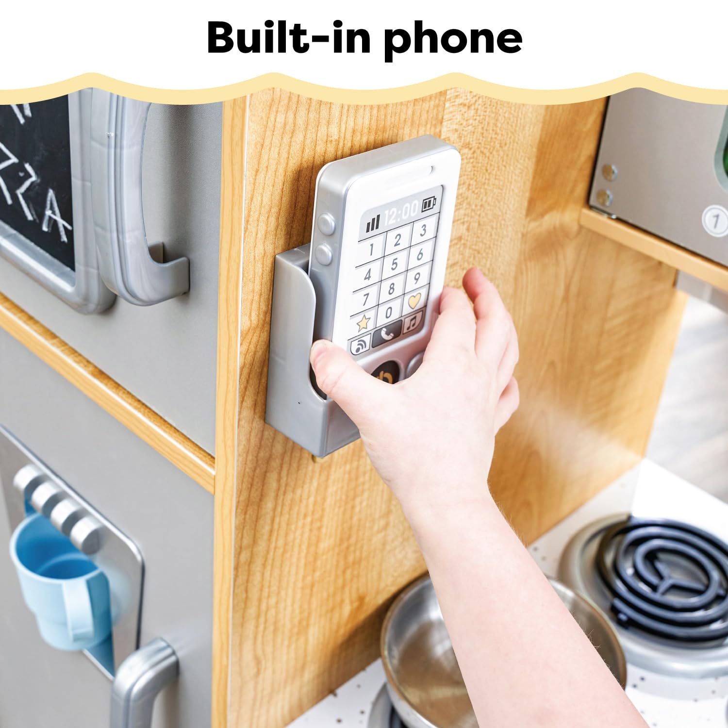 KidKraft Uptown Natural Wooden Play Kitchen with Play Phone, Chalkboard & Towel Rack, Gift for Ages 3+