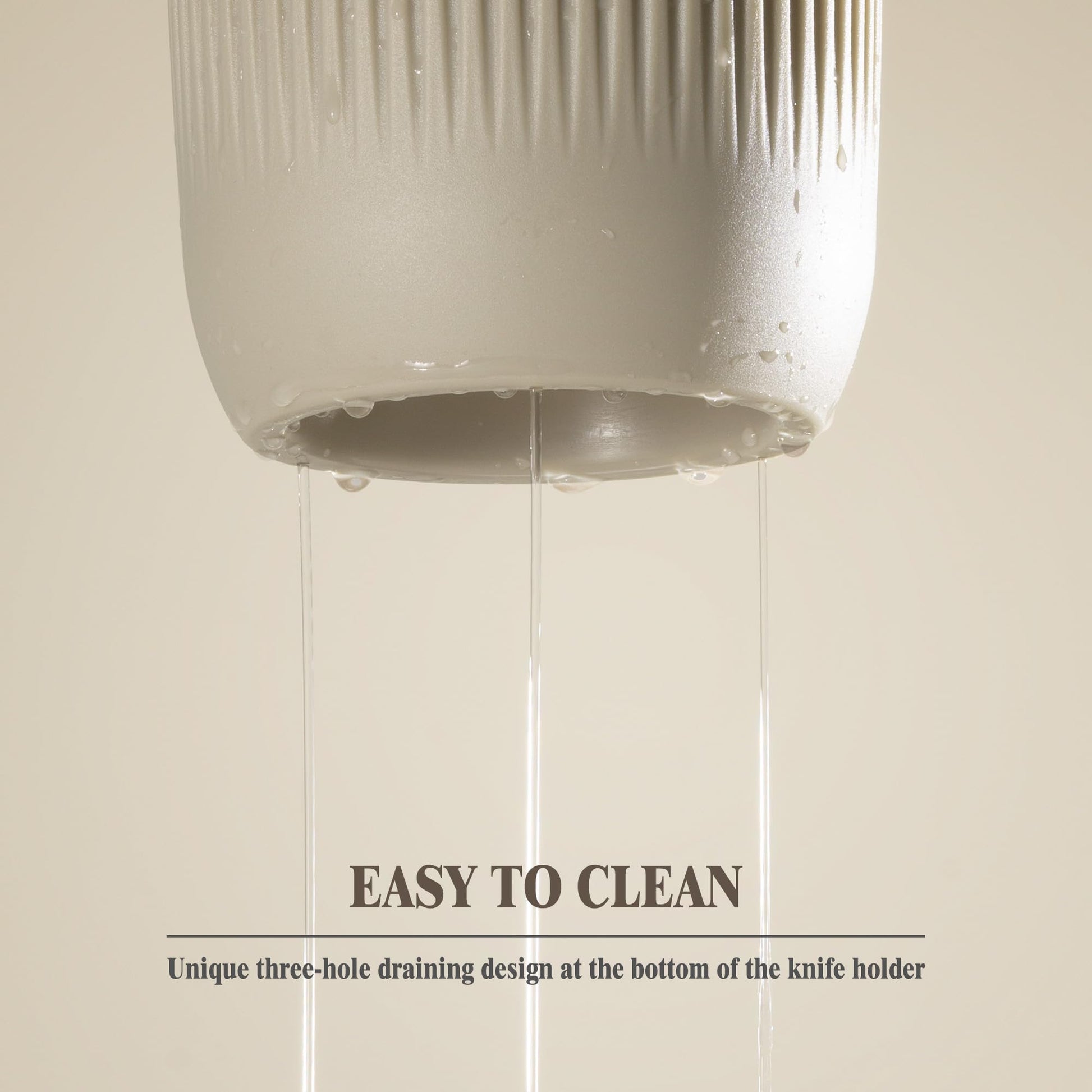 - 【Three-Hole Drainage Design】 You can use water to clean the knife seat without worrying about mold like the wooden seat. There are special three-hole drainage holes to perfectly drain the inside.